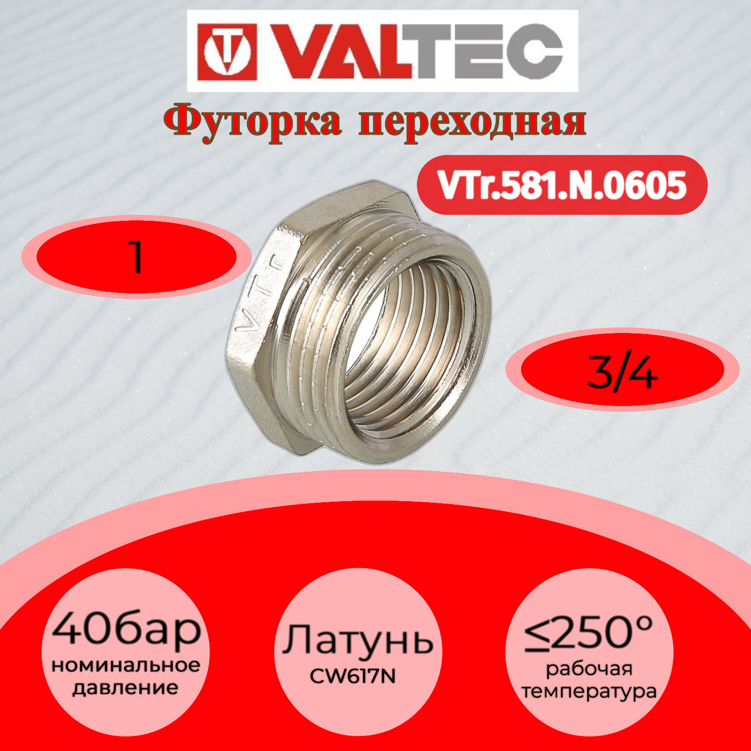 Модель: Футорка латунь с переходом Valtec 1" х 3/4"