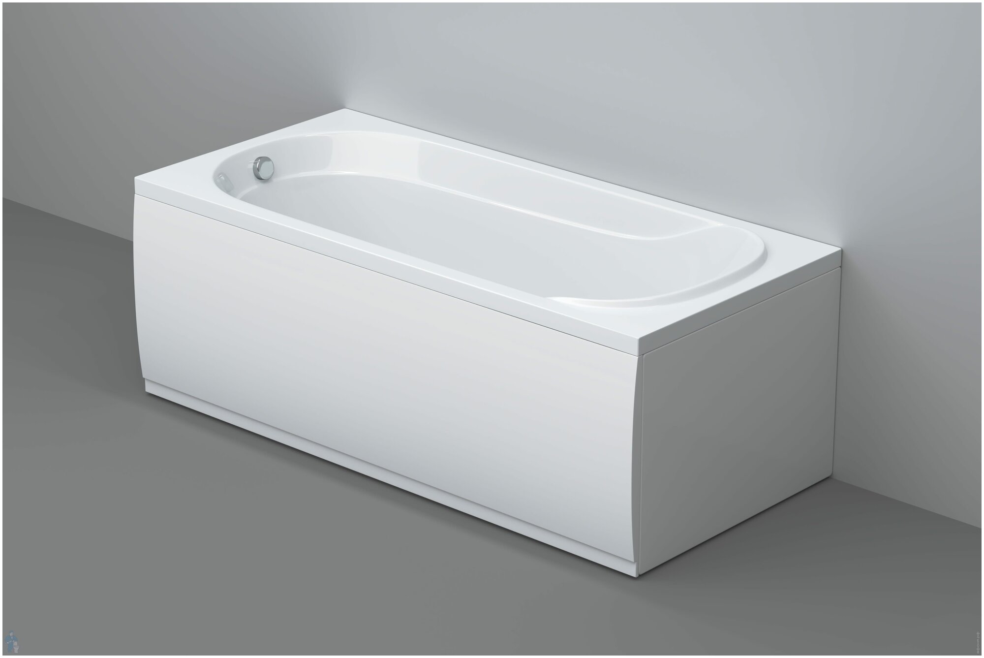 Фронтальная панель устанавливается совместно с акриловой ванной 170х70 см. Готовая конструкция имеет целостный гармоничный вид.