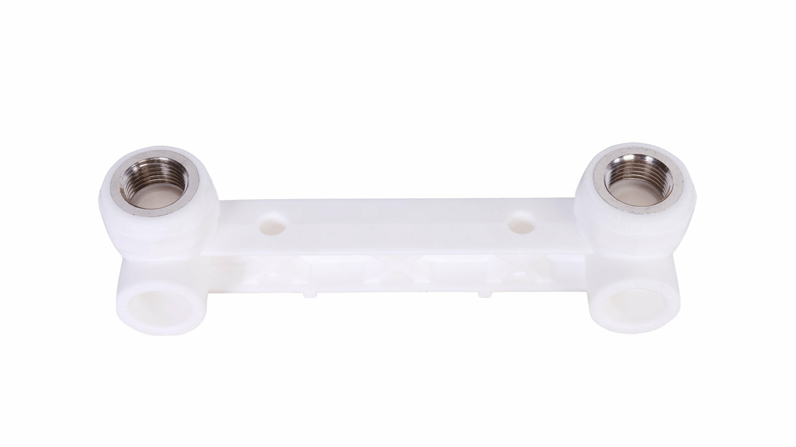 Монтажная планка с угловыми полипропиленовыми фитингами (водорозетками), предназначенными для подключения сантехнического смесителя со стандартным межосевым расстоянием к водопроводу из полипропиленовых труб.