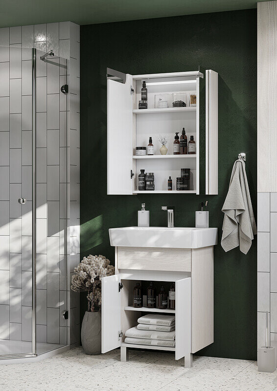 Модель: Тумба под раковину Акватон Верди белый/ясень фабрик 60 см