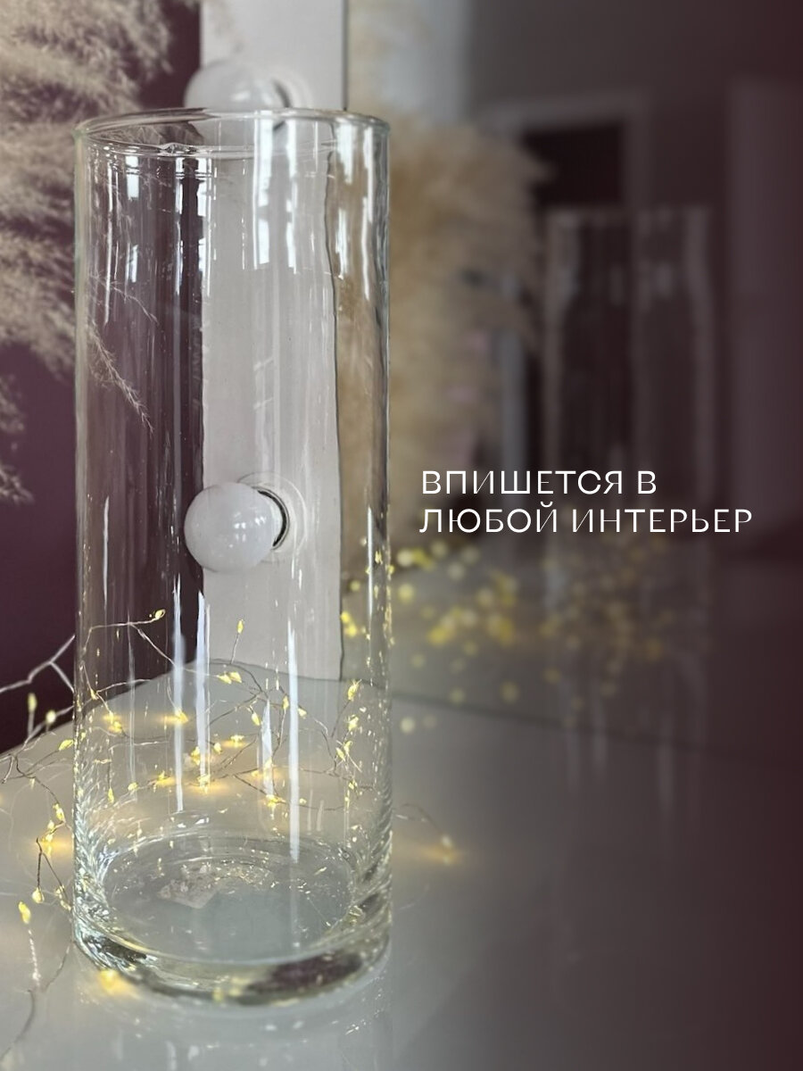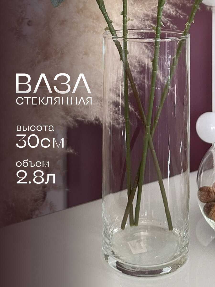Ваза из стекла подойдет для букетов из живых и искусственных цветов, а также для высушенных трав и других композиций. Классическая форма делает ее универсальным элементом декора.