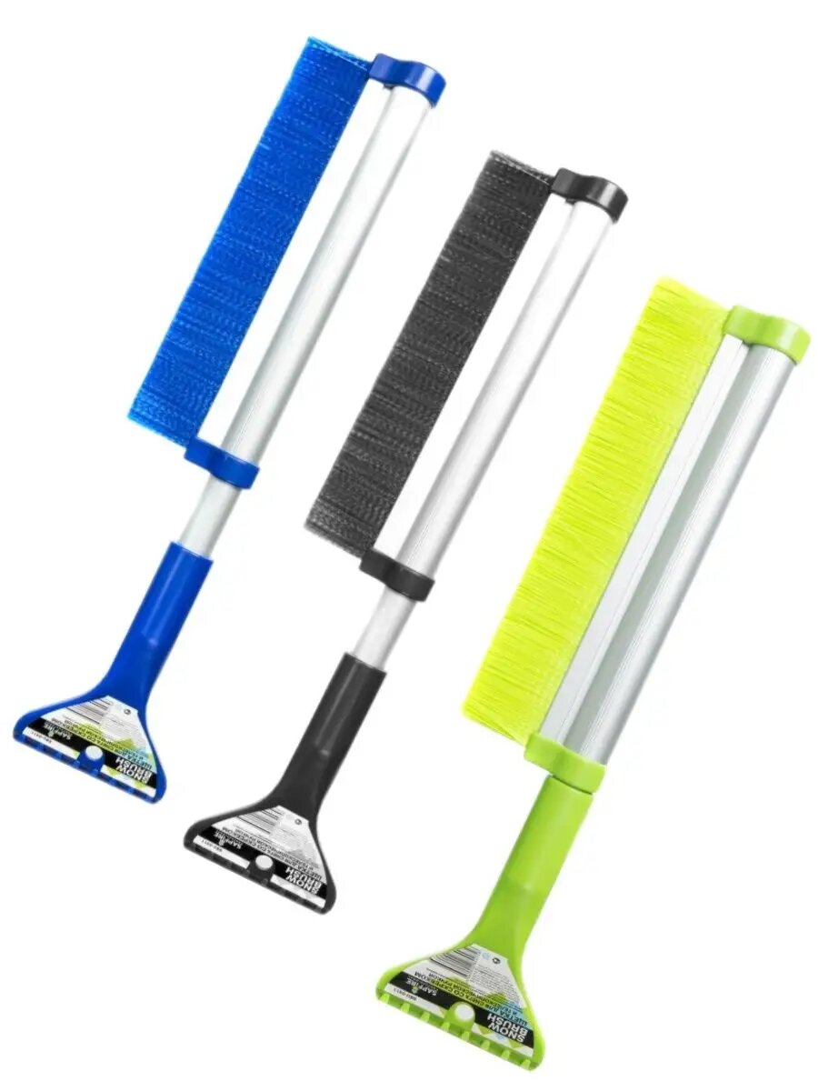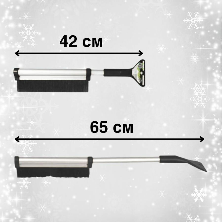Щетка для снега со скребком, и поворотной телескопической ручкой. Удобная ручка облегчает процесс чистки крыши автомобиля.