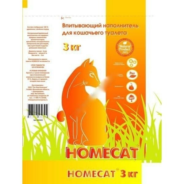 Модель: Наполнитель HOMECAT впитывающий 3 кг 5 л