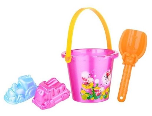 Производитель Нордпласт славится высоким качеством производимых игрушек, и данный набор для песка № 106 не исключение. Комплект состоит из 4 элементов: двух формочек в виде паровозика и грузовичка, лопатки и ведерка. Формочки детализированы, поэтому фигурки из песка будут иметь много мелких деталей. На ведерке имеется красочный рисунок, который привлечет внимание малыша.