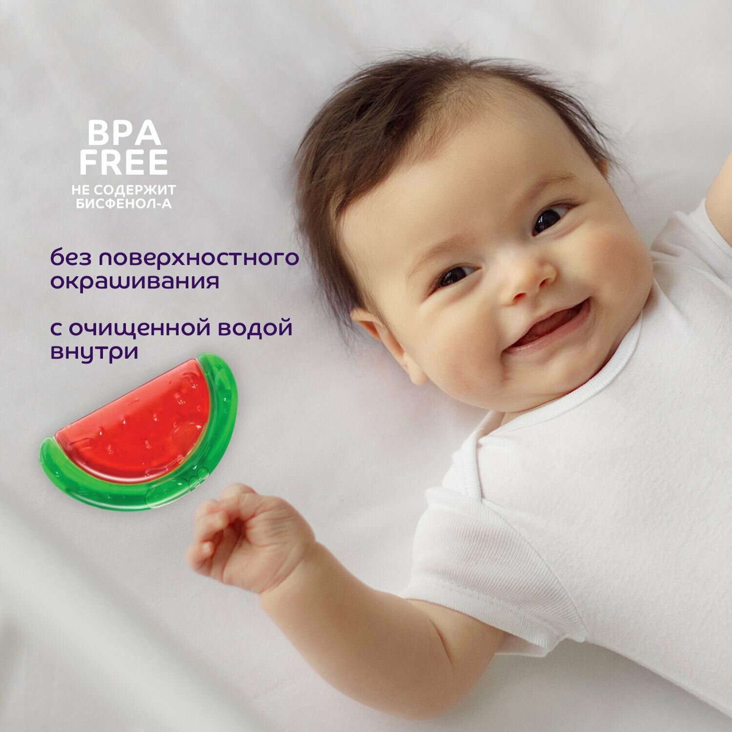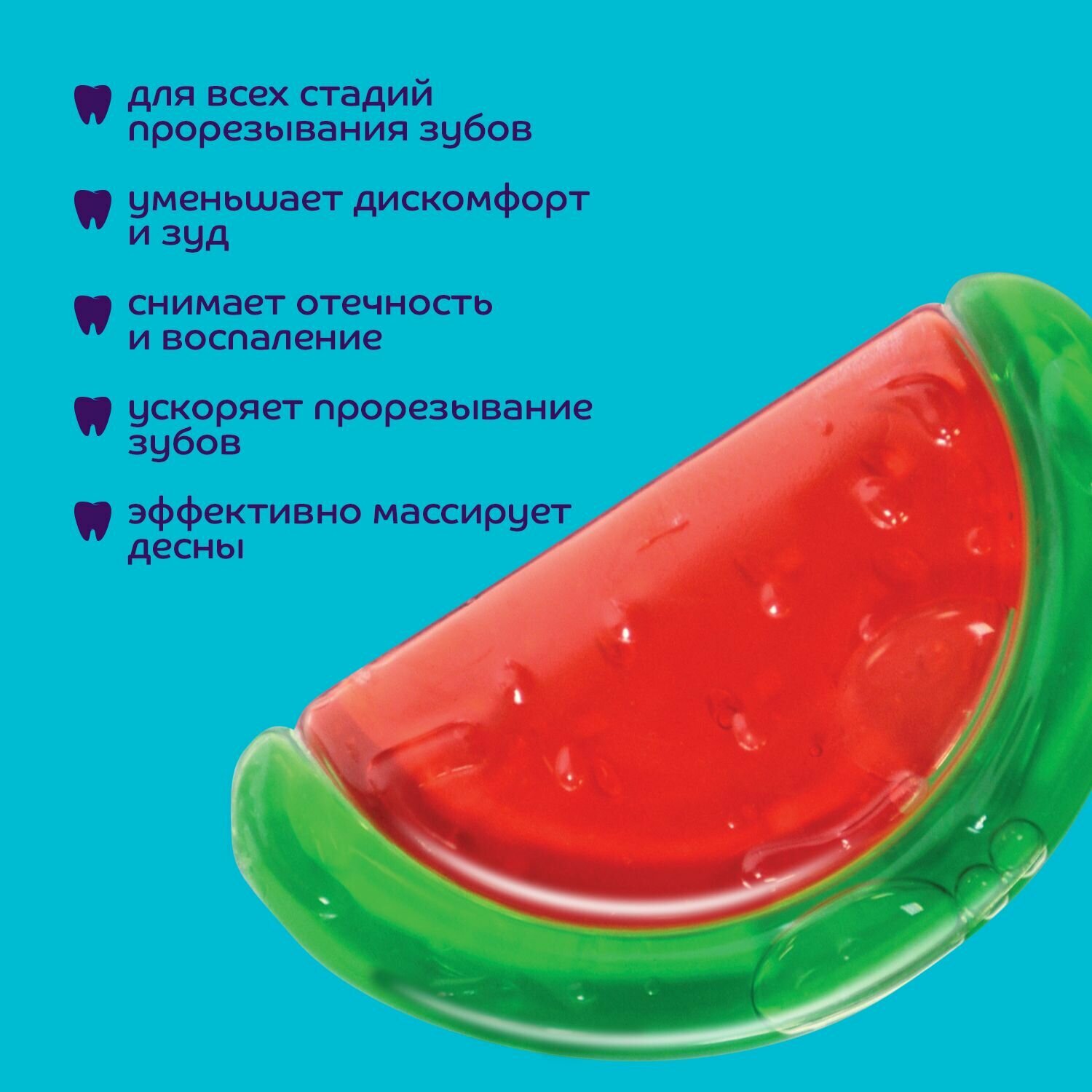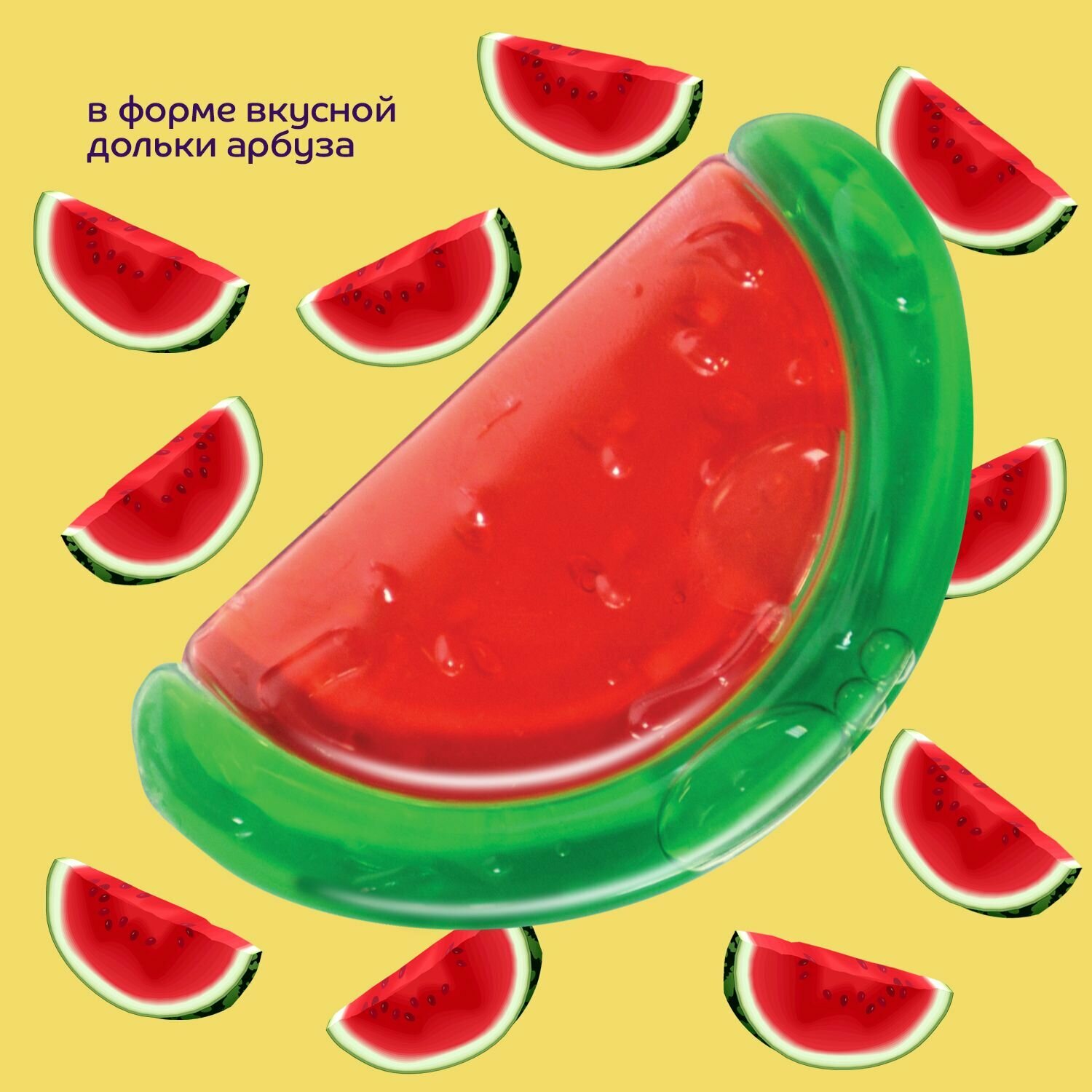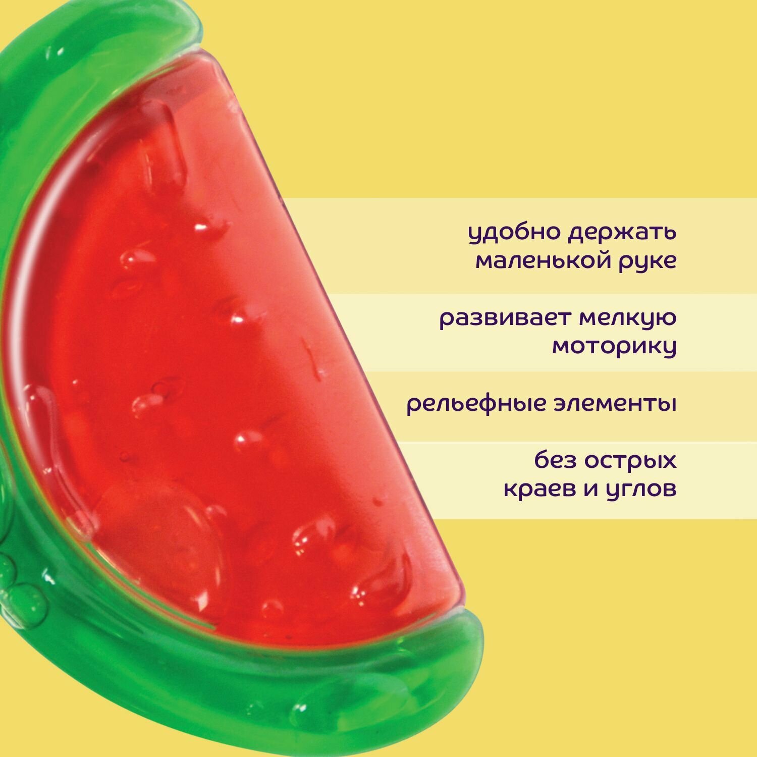 У Малыша ухудшилось настроение и он начал плакать - просто начали расти зубки. Да-да! Стали зудить десна и ребеночек в этот период стал искать, что бы такое укусить. Малыш начинает кусать все, что попадает ему на пути: руки, губы, игрушки и материнскую грудь! На помощь Маме приходят прорезыватели для зубов. Детская игрушка-прорезыватель из силикона ослабит боль у Малыша в период появления первых зубиков. Малышу удобно держать прорезыватель в своих маленьких ручках. Прорезыватель в форме арбузика отлично подойдет для маленьких любителей фруктов и ягод. Косточки арбузика имеют выпуклую форму, поэтому Ребеночку приятно кусать арбузик.