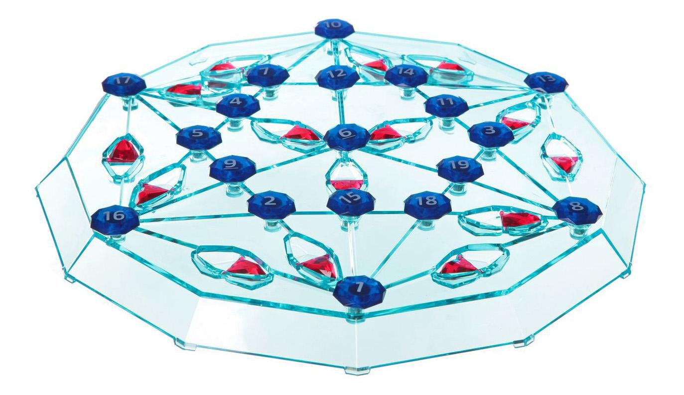 Настольная игра Бриллиантовый квест. Игра «Бриллиантовый квест» предназначена как для одного игрока, так и для компании. В этой игре предстоит на специальной шестигранной доске размещать пронумерованные магнитные камни в количестве 19 штук определенным образом: на точках пересечения линий и так, чтобы получилась непрерывная тропа! Игра требует большой внимательности и наличия пространственного мышления, и станет замечательным интеллектуальным развлечением – как для детей, так и для взрослых! А наличие огромного количества игровых комбинаций никогда не даст заскучать! В состав игры входят игровая доска с пятнадцатью двигающимися стрелками, девятнадцать пронумерованных камней и инструкция.