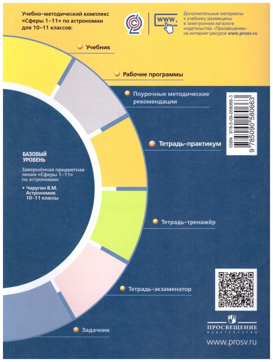 Тетрадь-практикум входит в состав учебно-методического комплекса "Астрономия. 10-11 классы" линии "Сферы". В пособии представлены лабораторные работы и практические задания, выполнение которых не только способствует успешному усвоению курса астрономии в соответствии с программой, но и расширяет и углубляет полученные в ходе урока знания. Использование научных методов исследования на всех этапах выполнения заданий, привлечение знаний, полученных в курсах физики, математики, географии, информатики являются главными особенностями тетради-практикума. Содержание практикума соответствует структуре учебника. Последовательное выполнение лабораторных работ и заданий практикума ориентировано на применение теоретических знаний в практической деятельности, формирования метапредметных умений.