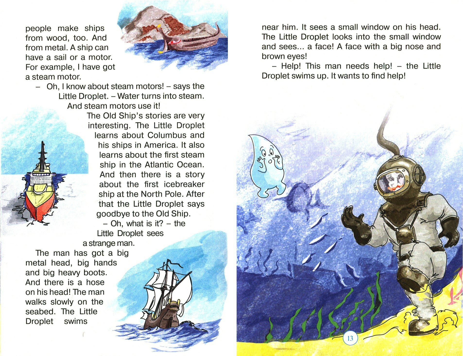 Перед вами ещё одна детская книжка Тимура Максютова, которая не менее интересна, чем все его предыдущие. Путешествия Капельки продолжаются. На этот раз она погружается в пучину морских вод, а вместе с ней и мы. На нашем пути встречаются многочисленные обитатели моря: белая птица, плоская камбала, глупенький краб… и Старый Корабль. Как и Капелька, мы и предположить не могли, что существуют такие рыбы как рыба-пила, рыба-игла, рыба-меч и даже рыба-клоун. Мы были очень удивлены, когда узнали, что в море обитают морская лисица, морской лев, морской кот и даже морская собака. Оказывается, что дельфины умеют разговаривать, а киты – петь. А ещё мы встретились с удивительным чудовищем по имени Петрович. Вам интересно кто это и что он делает на глубине моря? Тогда читайте эту волшебную книжку и вы узнаете какое обещание дала Капелька Старому Кораблю и чем завершилось её морское путешествие. Во время чтения мы рассматривали многочисленные красочные иллюстрации, которые помогают детям образно мыслить.
