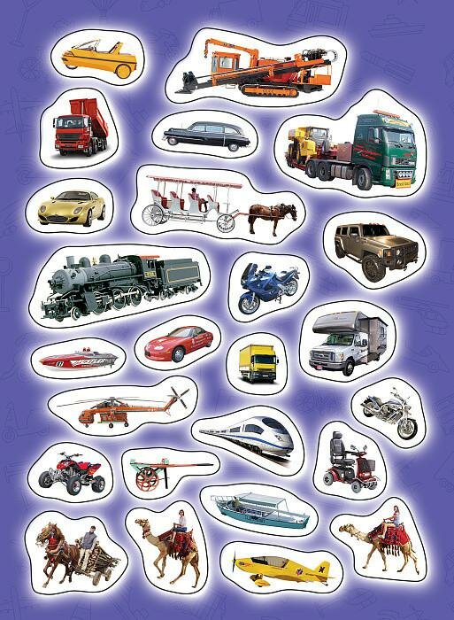 Коллекция ярких и красочных наклеек с качественными фотографиями самых разных видов транспорта – от самолета и автомобиля до воздушного шара и слона! Украшайте наклейками альбомы, тетради, дневники, рисунки, блокноты, записки, открытки и даже комнаты. Используйте их в игре и творчестве! Наклейки не только красивые, но и полезные, ведь занятия детей с наклейками способствуют развитию речи, мелкой моторики, координации движений, развитию внимания, интеллекта, зрительного и слухового восприятия, развитию творческого мышления. А еще наклейки помогут сделать жизнь ярче!
