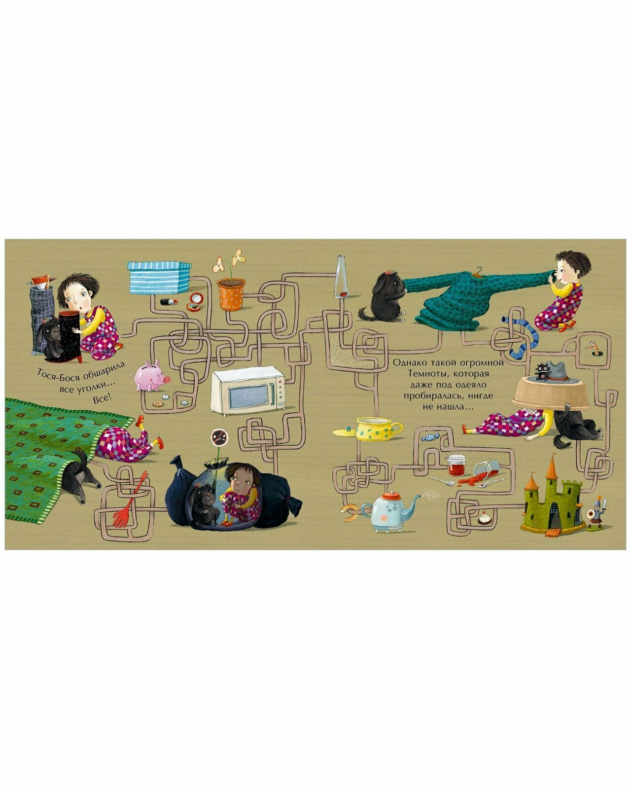 Замечательная книга! Нам с сыном она понравилась даже больше, чем две предыдущие. Прекрасные иллюстрации, которые не устаешь рассматривать изо-дня в день, и каждый раз находишь что-то новенькое. Взять хотя бы паучка, спрятавшегося за комодом со спицами в лапках, а на стене - вязаные из паутинки свитера, платья, шали. Все по-настоящему! Книга раскрывает перед нами мир таким, каким его видит ребенок - во всех мелочах. Кроме того, очень понравилось в сюжете то, как Тося-Бося реализует свой замысел. В этом плане книга очень дидактична. Моему сыну нравятся лабиринты - поэтому страничка "поиска темноты" стала для нас большим сюрпризом! Ну и настоящее чудо в завершении истории. В огромной темноте, оказывается, прячутся такие чудесные звезды! И темнота уже совсем не кажется страшной, она обнимает тебя, и становится теплой и уютной, совсем как в детстве.