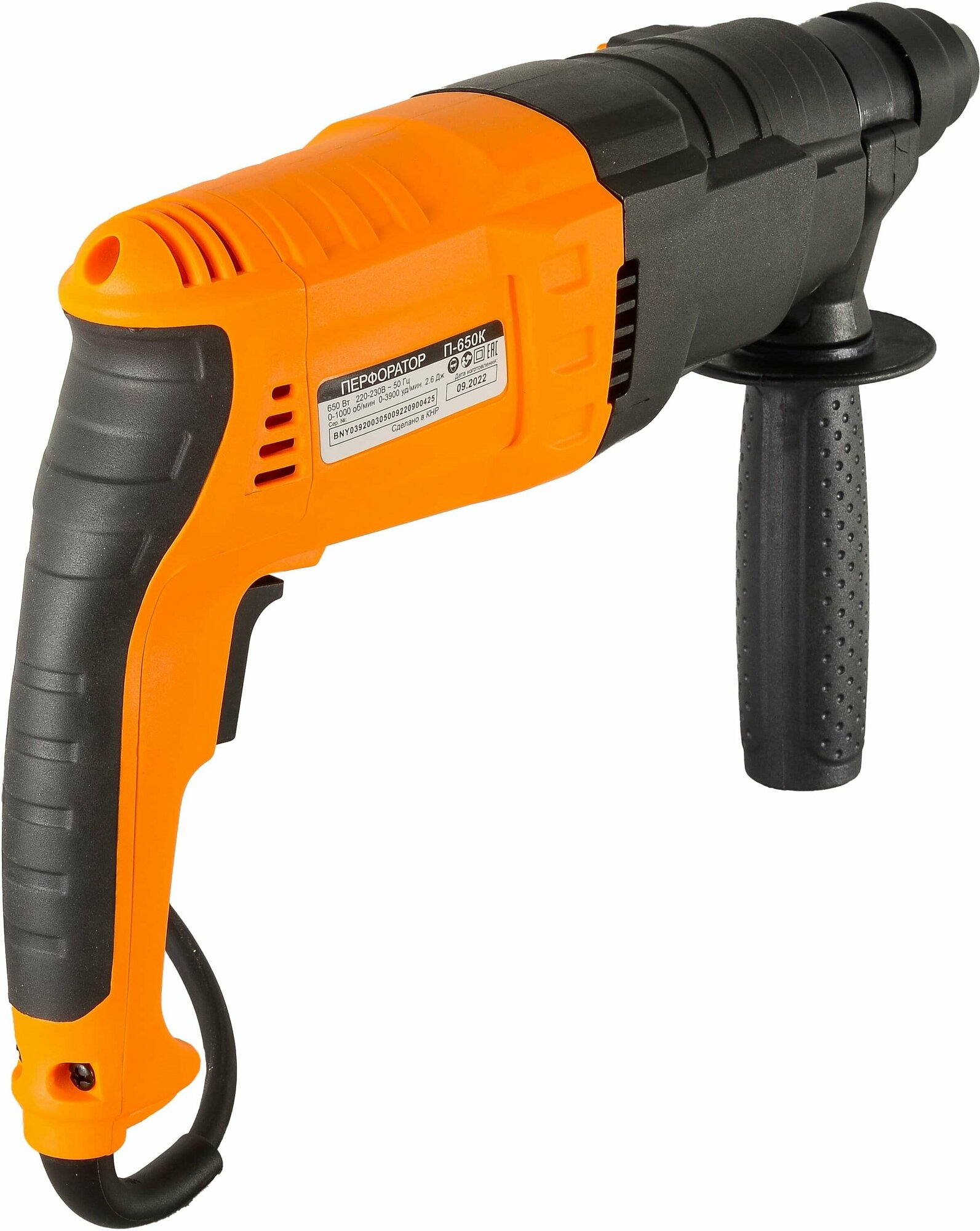 | Прочие особенности и свойства | Сила удара, Дж2,6 Частота ударов, ул/мин0-3900 Частота вращения на х/х, об/мин0-1000 Длина кабеля2 м. |