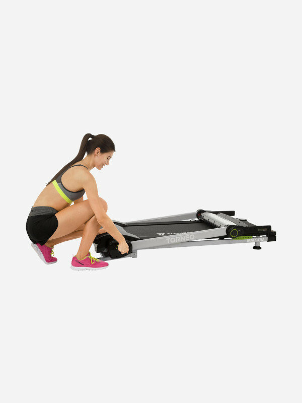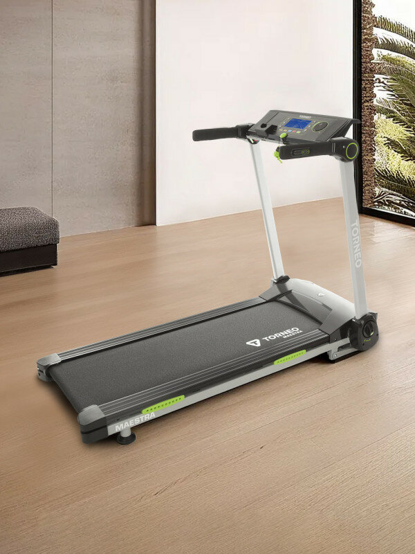 Беговая дорожка Torneo Maestra с суперкомпактной системой складывания для полноценных домашних тренировок.
