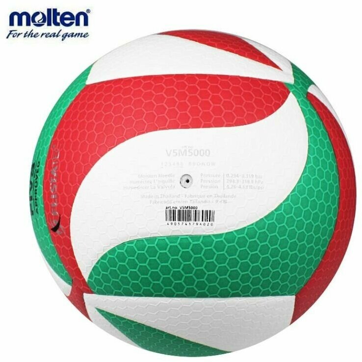 Мяч волейбольный MOLTEN V5M5000-DE размер 5, FIVB Approved Волейбольный мяч MOLTEN V5M5000 одобрен FIVB (FIVB Approved). Разработан с использованием технологии Flistatec® (Flight Stability Technology -Технология Устойчивости Полета). Использование более мягкого и толстого слоя микроволокна, который в сочетании с защитным нейлоновым слоем улучшает сцепку с мячом, обеспечивая более точное выполнение верхней передачи.Мягкая матовая синтетическая кожа, 2 подкладочных слоя из синт. ткани, 18 панелей, клееный, камера выполнена из натурального латекса. Логотип DVV- Немецкой волейбольной ассоциации. Размер: 5;Страна-производитель: китай;Материал камеры: Латекс;Тип соединения панелей: Клееный;Количество панелей: 18;Количество подкладочных слоев: 2;Материал покрышки: Синт. кожа (полиуретан);Цвет дополнительный: Красно-зеленый;Уровень: Профессиональный;кодтнвэд: 9506620000;