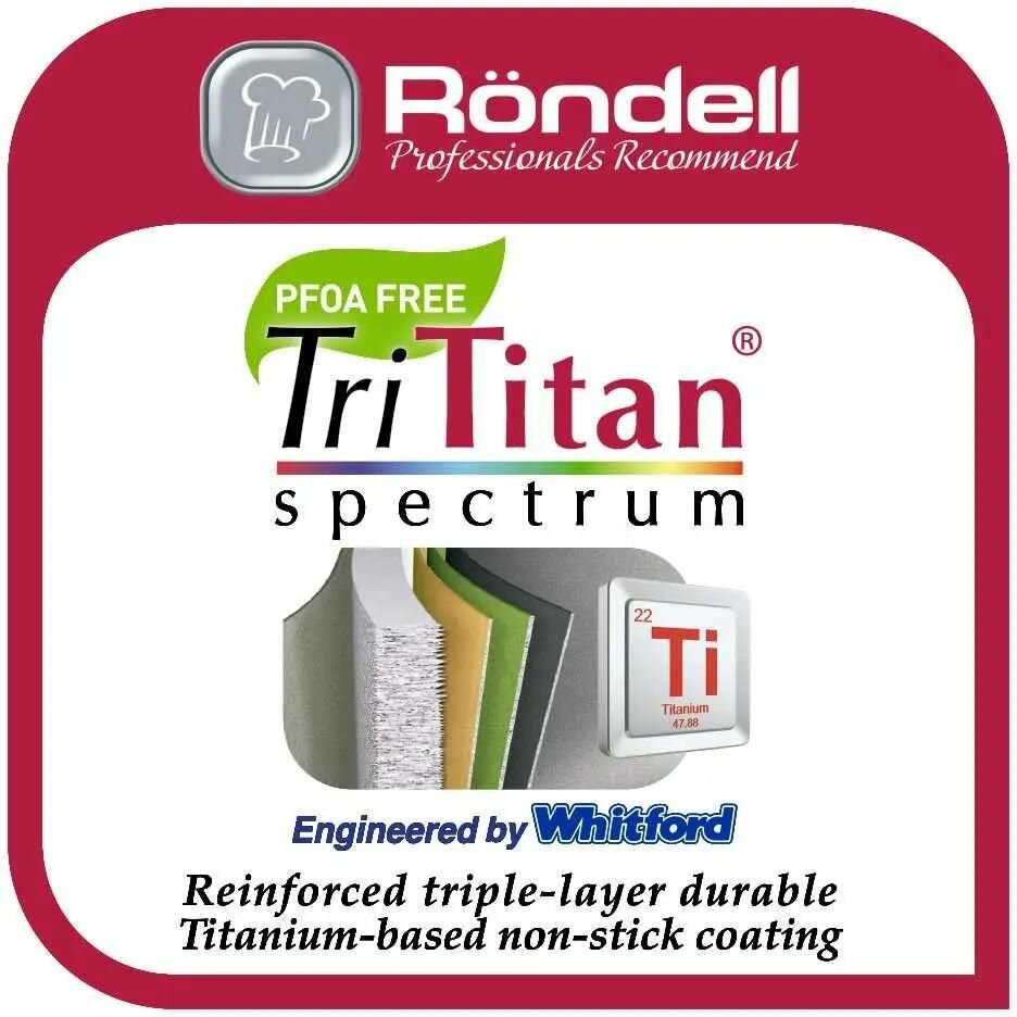 Внутреннее покрытие TriTitan Spectrum трехслойное, износостойкое антипригарное покрытие на основе титана. Внешнее покрытие и отделка керамическое покрытиеТолщина стенок 3,5 мм, толщина дна 3,5 мм. Материал крышки комбинированный термостойкое стекло и силикон аксессуары. Удобные литые из нержавеющей стали с силиконовыми вставками. Тип крепления аксессуа
