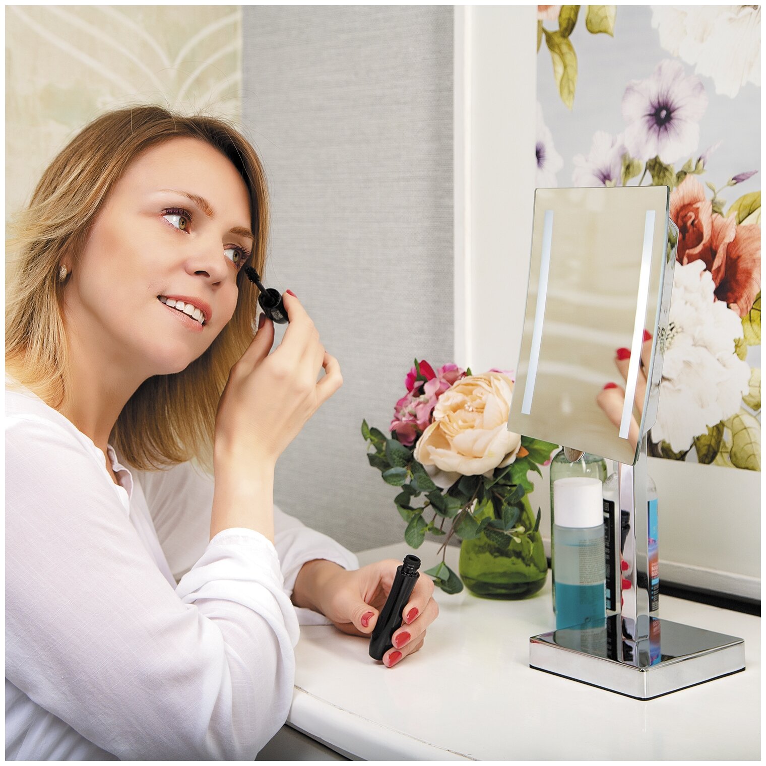 Настольное одностороннее косметическое зеркало WasserKRAFT с 3-кратным увеличением и LED-подсветкой.
