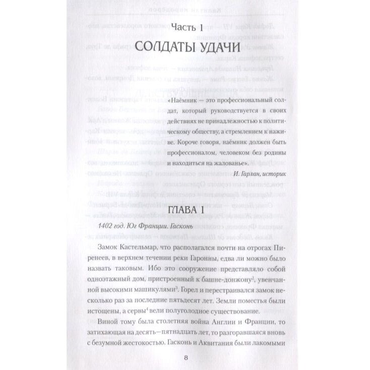 Гасконский дворянин, барон Шарль де Кастельмар, покидает разорённый войной замок и отправляется в Бургундию, дабы примкнуть к наёмникам герцога Филиппа Доброго. Судьба сводит его с неким Валери Сконци, который является тайным агентом Ватикана.