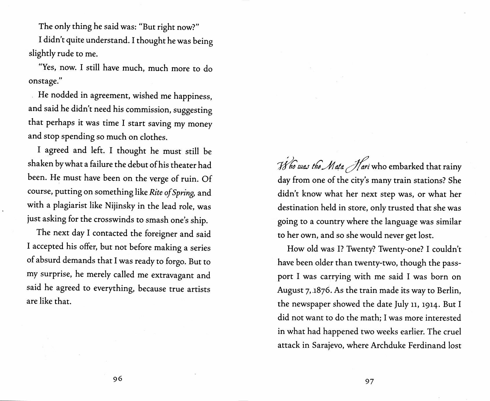 Told in Mata Hari's voice through her final letter, The Spy is the unforgettable story of a woman who dared to break the conventions of her time, and paid the price.