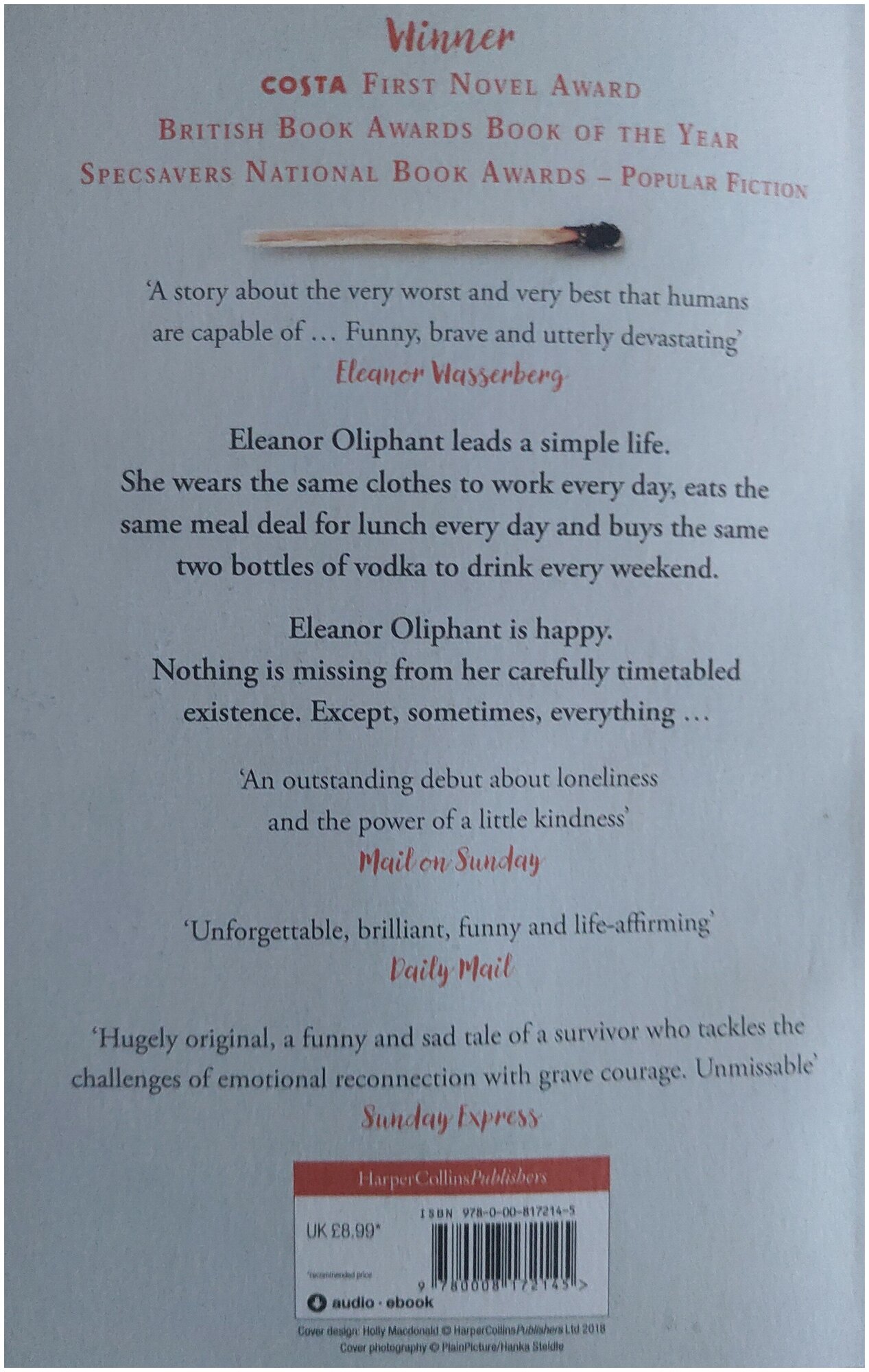 Eleanor Oliphant leads a simple life. She wears the same clothes to work every day, eats the same meal deal for lunch every day and buys the same two bottles of vodka to drink every weekend.