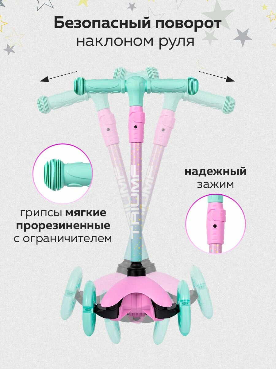 Перед вами замечательный трёхколесный самокат бренда Triumf Active. Для того, чтобы ребёнку еще сильнее хотелось на нем прокатиться, его сделали таким ярким и красивым. Самокат выполнен в ярко-оранжевом цвете, а, значит, понравится как мальчикам, так и девочкам. При движении колёса самоката светятся, что приведёт ребёнка в настоящий восторг! А родители обязательно оценят его лёгкость и компактность. Конструкция самоката прочная и надежная, поэтому катание абсолютно безопасно. Благодаря регулируемой высоте руля и высокой максимальной нагрузке, данный самокат подойдет ребёнку от 1,5 до 5 лет.