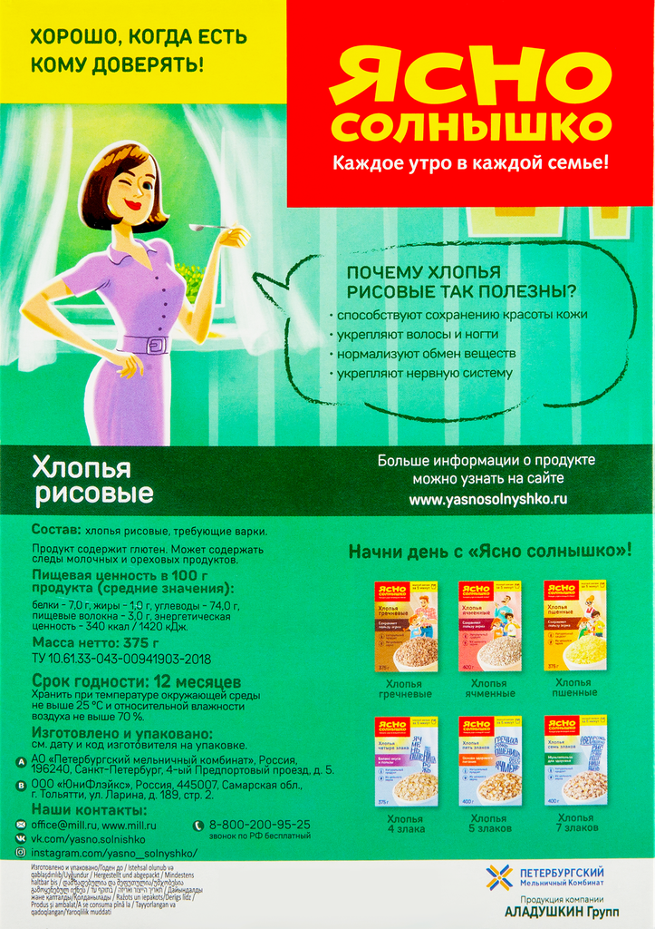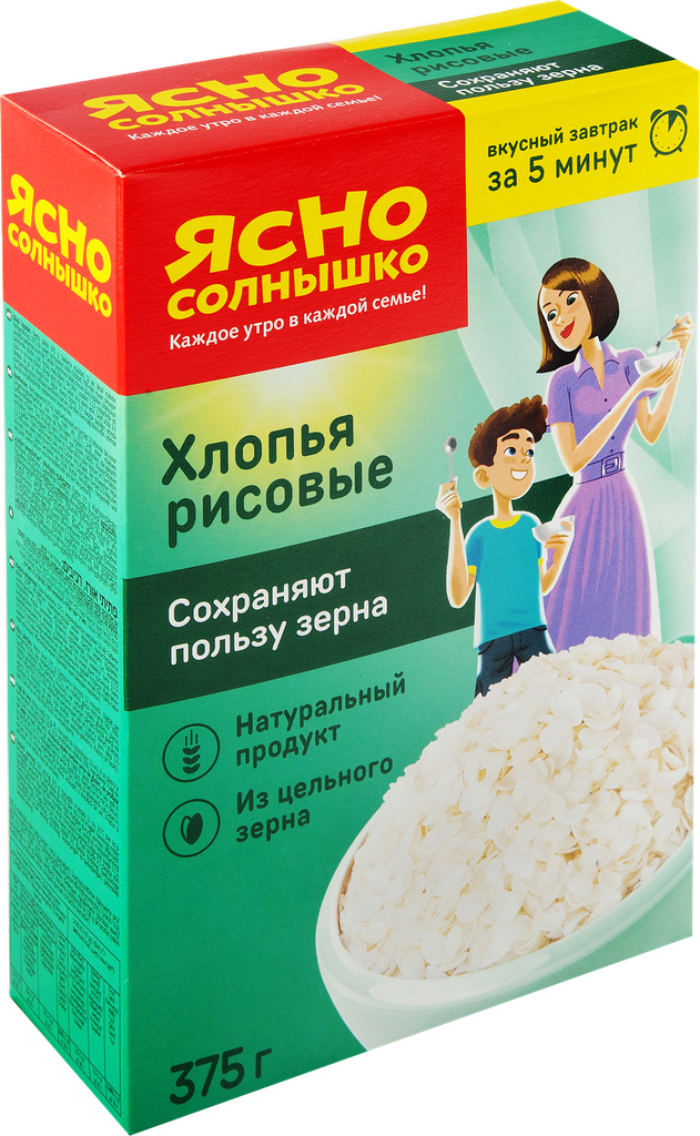 - Ясно Солнышко хлопья рисовые: хлопья рисовые требующие варки.
