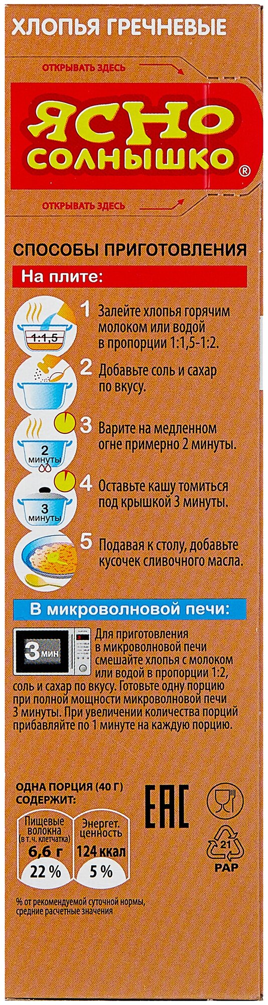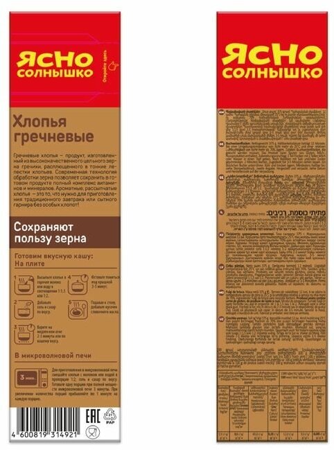 - Ясно Солнышко хлопья гречневые: хлопья гречневые требующие варки.