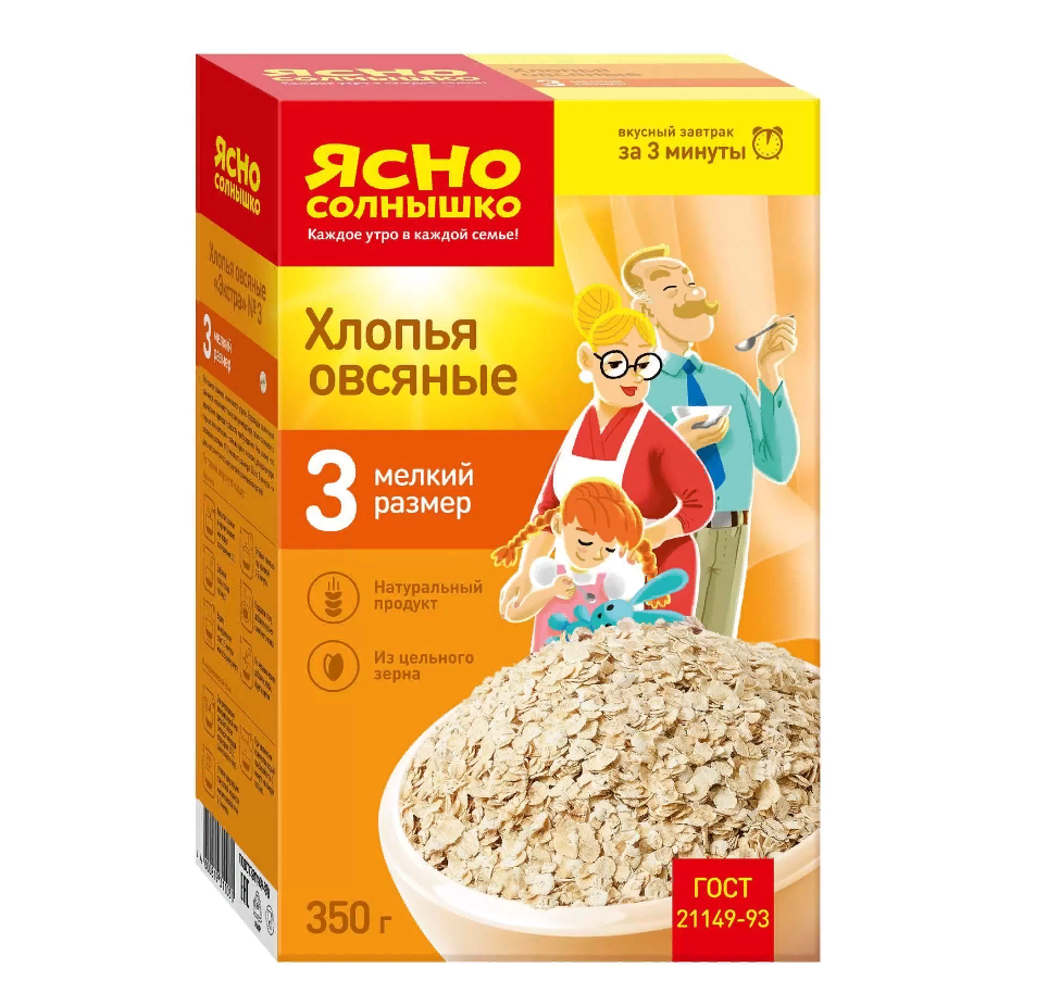 Сервис сравнения цен СкидкаГИД предлагает сравнить цены на товар «Хлопья Ясно Солнышко овсяные №3 350 г (182556)»