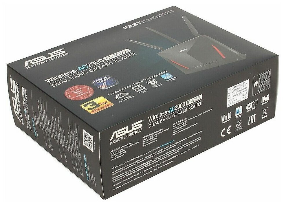 Маршрутизатор ASUS RT-AC86U – это геймерское решение, обладающее невероятно высокой скоростью (до 2917 Мбит/с по сети Wi-Fi) и наделенное дополнительными функциями, разработанными специально для любителей компьютерных игр. Беспрецедентно высокую скорость передачи данных по беспроводной сети обеспечивает технология NitroQAM. Плавное воспроизведение потокового видео и онлайн-игры без малейших «лагов» – все это будет доступно для каждого пользователя сети Wi-Fi, организованной на базе данного маршрутизатора.