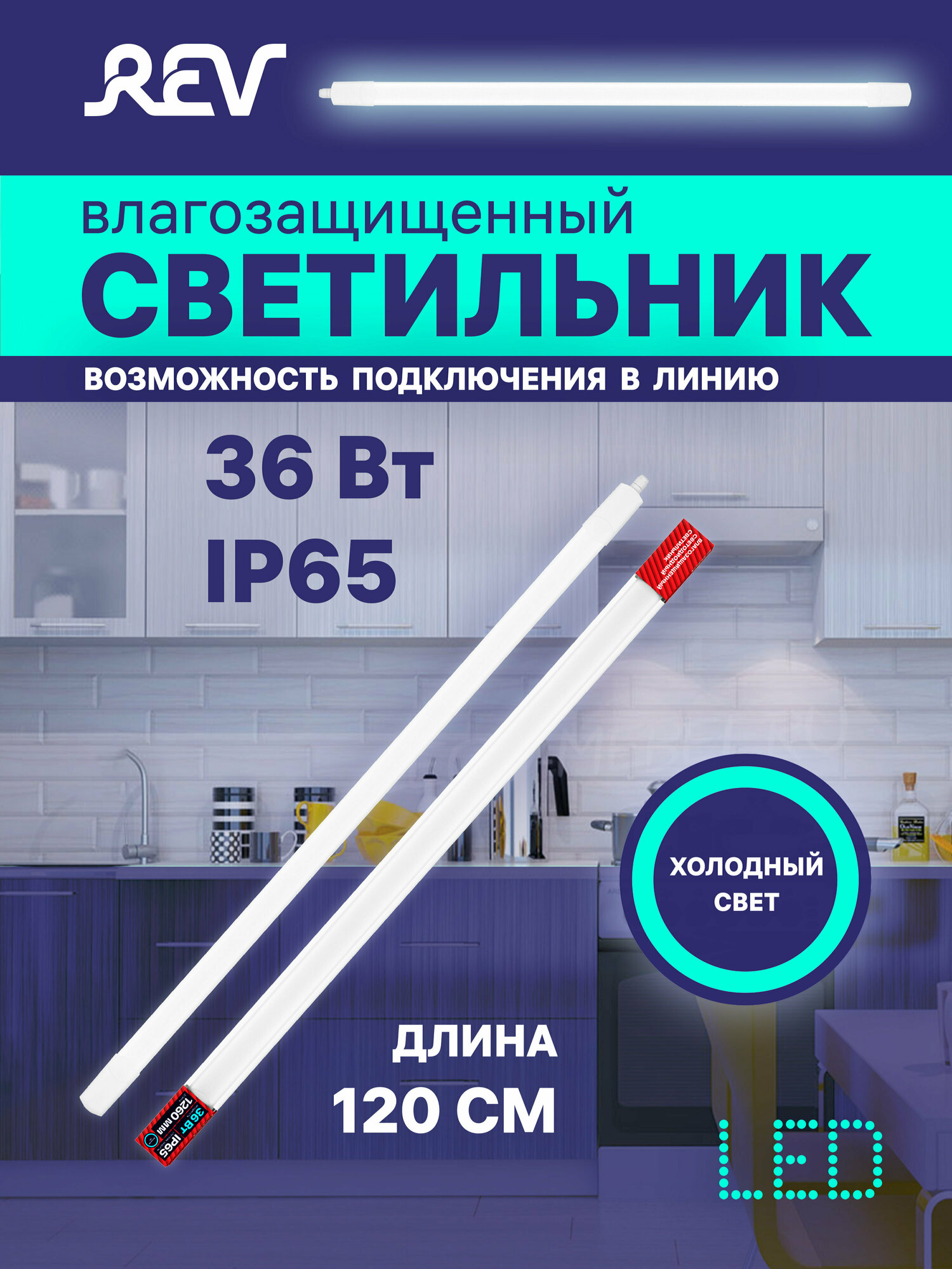 Светильник LED влагозащищенный REV 36W предназначен для организации освещения в больших помещениях. Может успешно применяться для производственных и коммерческих площадей, мест общественного пользования. Отличается длительным сроком эксплуатации, прочностью и устойчивостью к деформации.