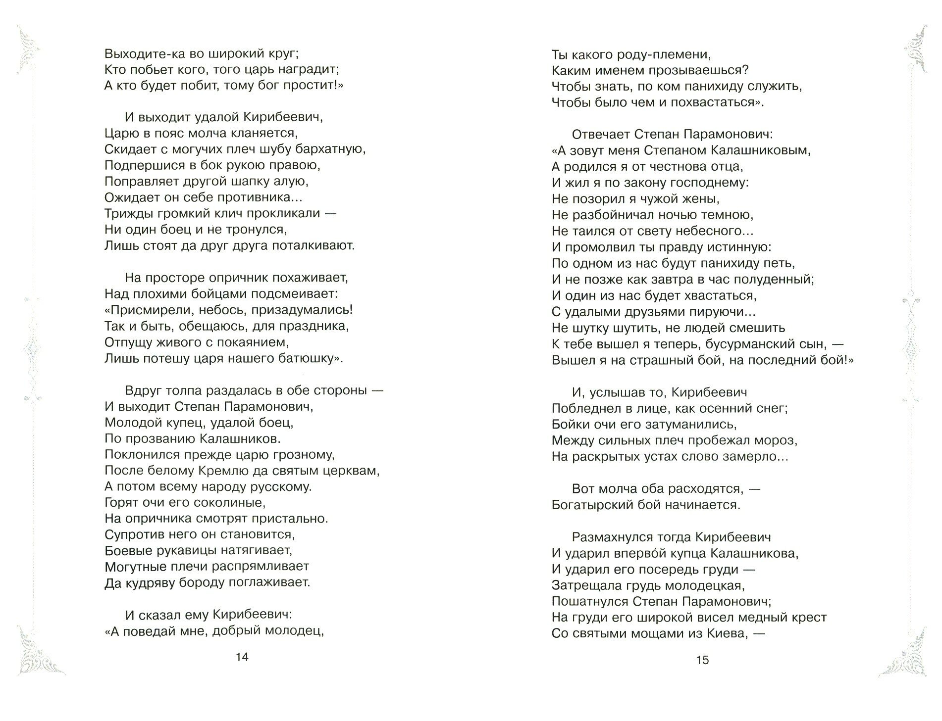 В книгу входят три Поэмы М. Ю. Лермонтова. Сюжет исторического произведения "Песня про царя Ивана Васильевича, молодого опричника и удалого купца Калашникова" разворачивается в эпоху русского Средневековья, во времена правления Ивана Грозного. Сюжет романтической поэмы "Мцыри" взят автором из кавказской жизни. О любви к родине рассказывает поэма "Беглец", в которой автор использовал сюжет древней горской легенды. Поэмы включены в школьную программу по литературе. . Книга адресована детям среднего и старшего школьного возраста.