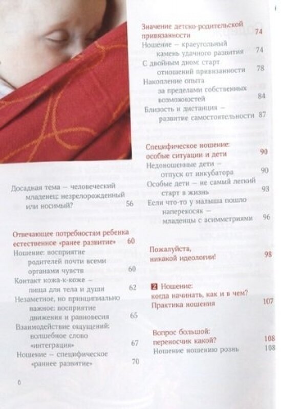 Отличная познавательная книга для тех, кто хочет освоить слинг, эрго-рюкзак и прочие вспомогательные средства для ношения малыша в близком контакте с собой. Мне помогла очень, информации не так много, но всё по теме, доступно, красочно, фотографии чудесные. Отличная бумага, книга в мягкой обложке, но тяжёлая. Аналогов не встречала.