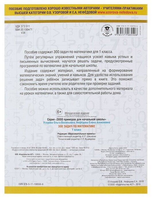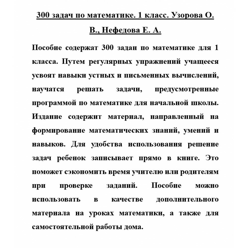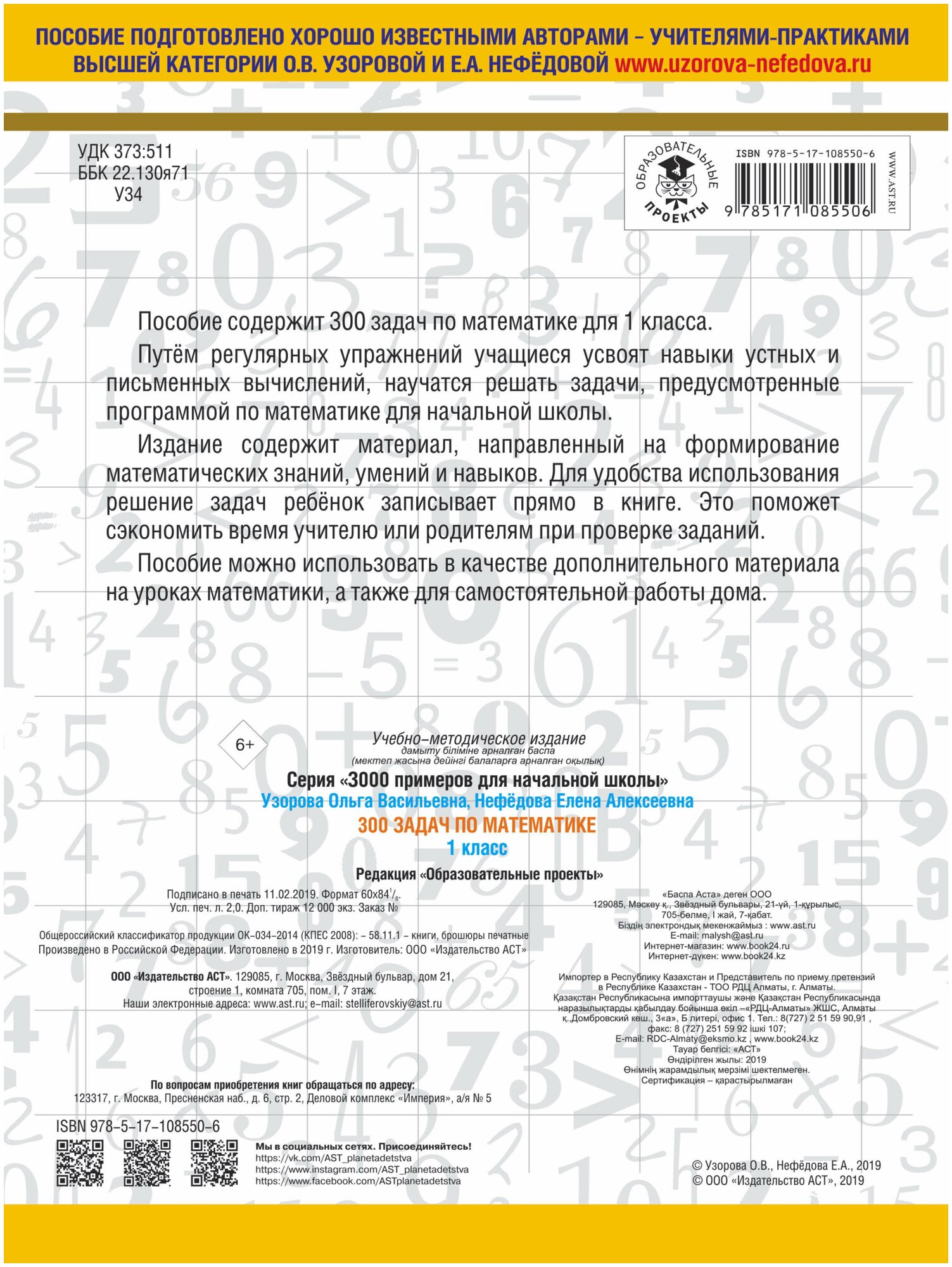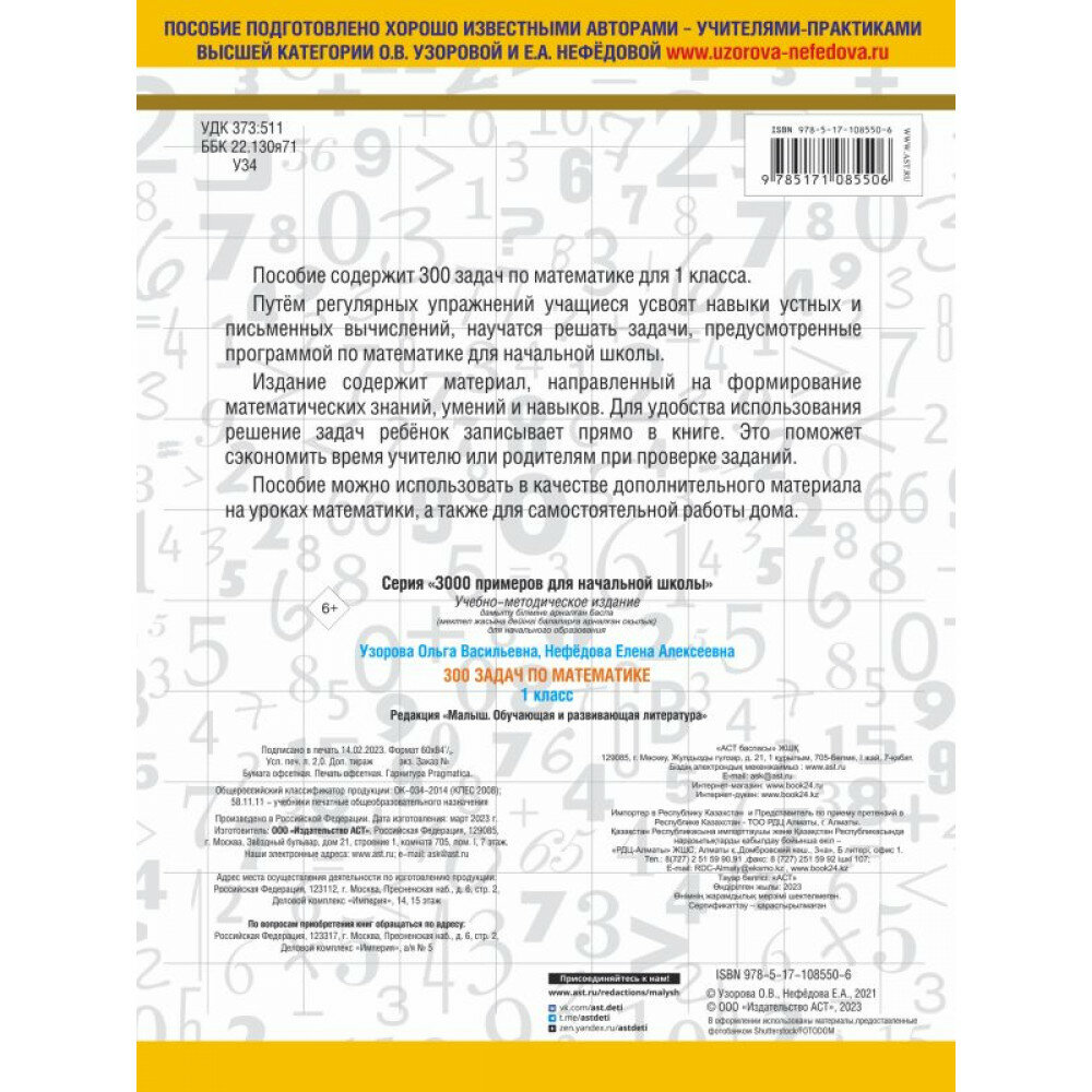 300 задач по математике. 1 класс (Елена Алексеевна Нефедова, Ольга Васильевна Узорова); АСТ, 2025