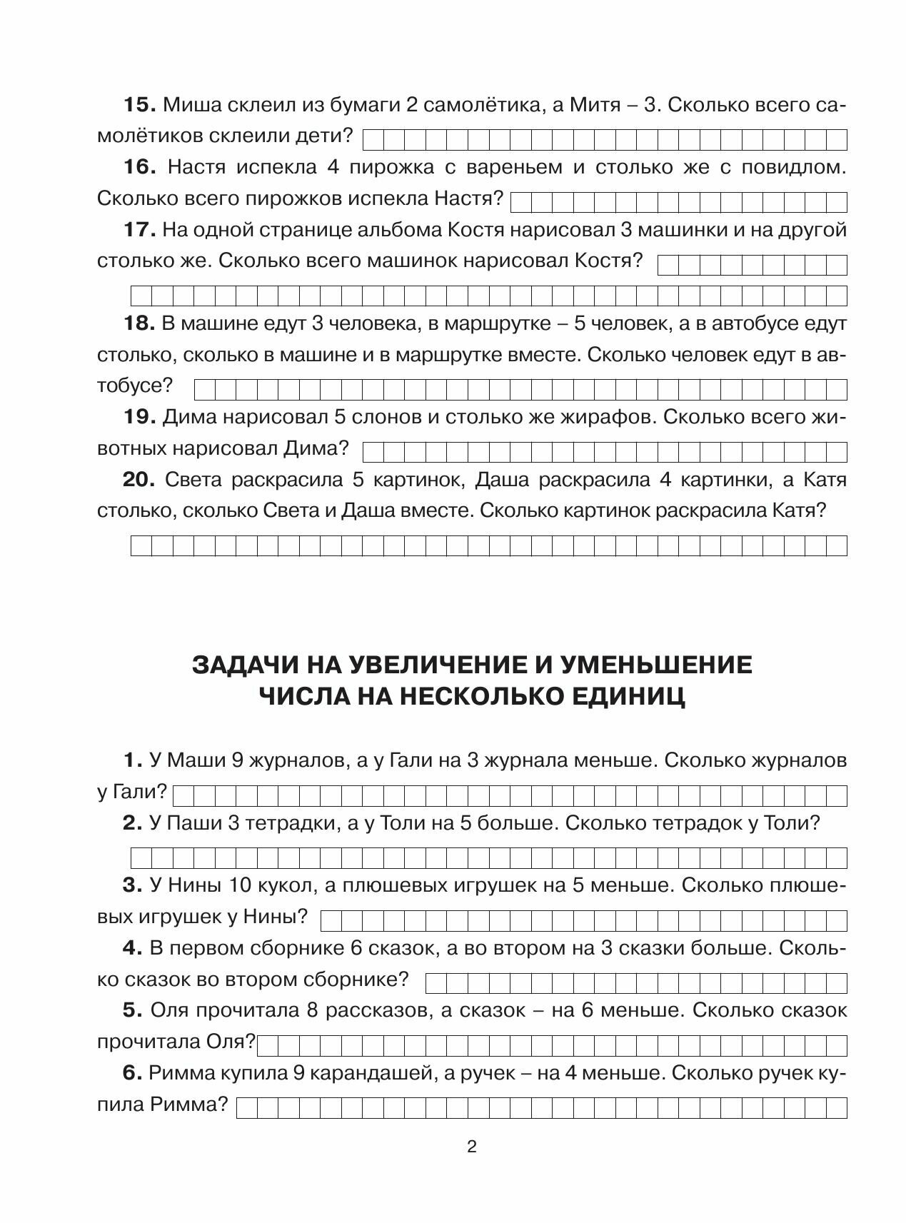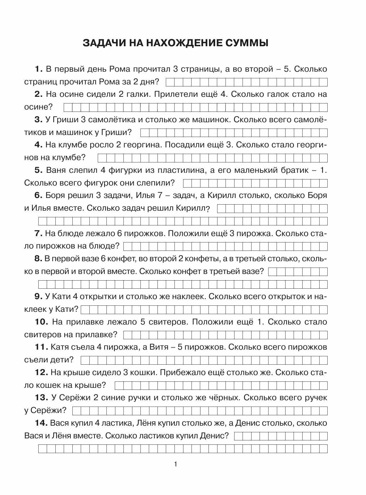 Издание содержит материал, направленный на формирование математических знаний, умений и навыков. Для удобства использования решение задач ребенок записывает прямо в книге. Это поможет сэкономить время учителю или родителям при проверке заданий. Пособие можно использовать в качестве дополнительного материала на уроках математики, а также для самостоятельной работы дома.