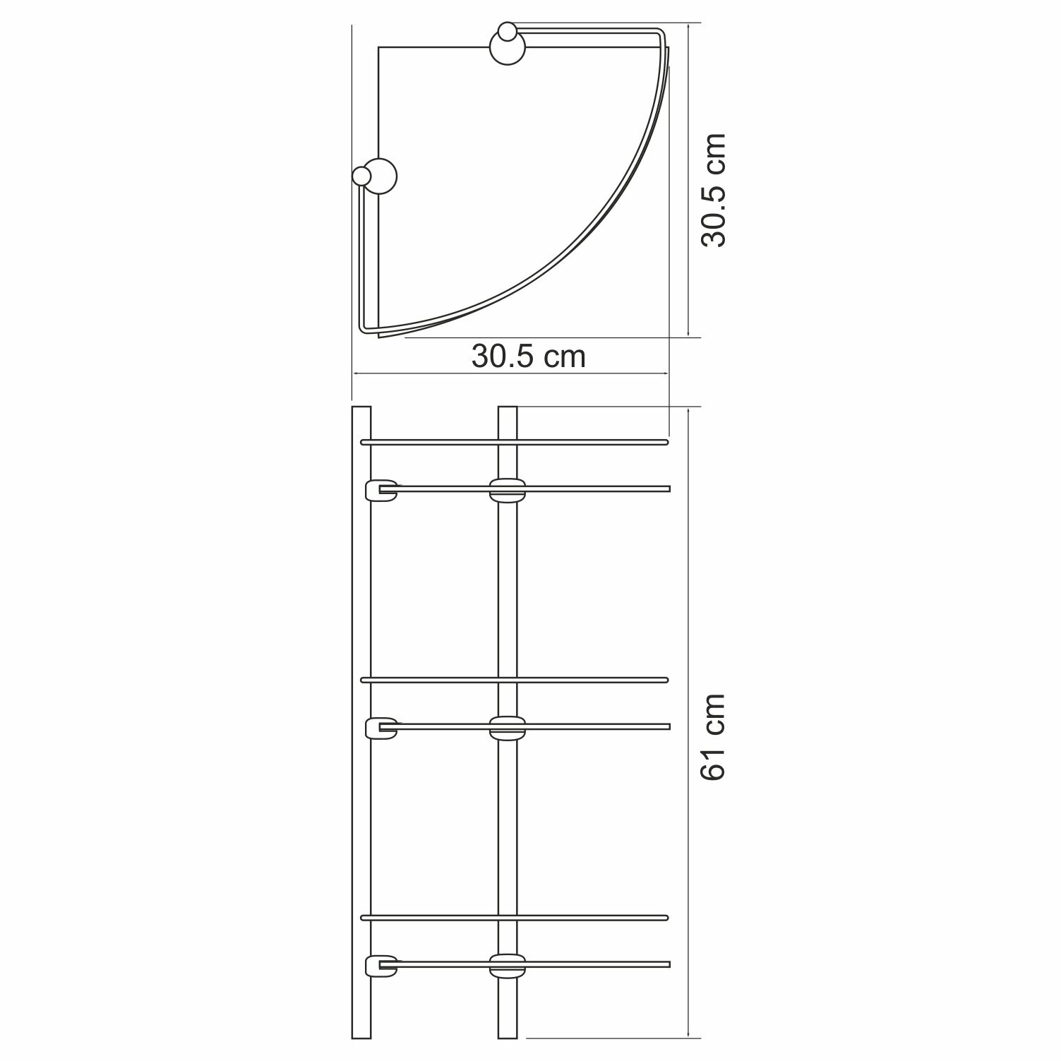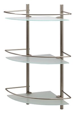 Полка стеклянная тройная, угловая. Материалы: металл, покрытие матовый хром, уплотнительные пластиковые кольца, закаленное матовое стекло.