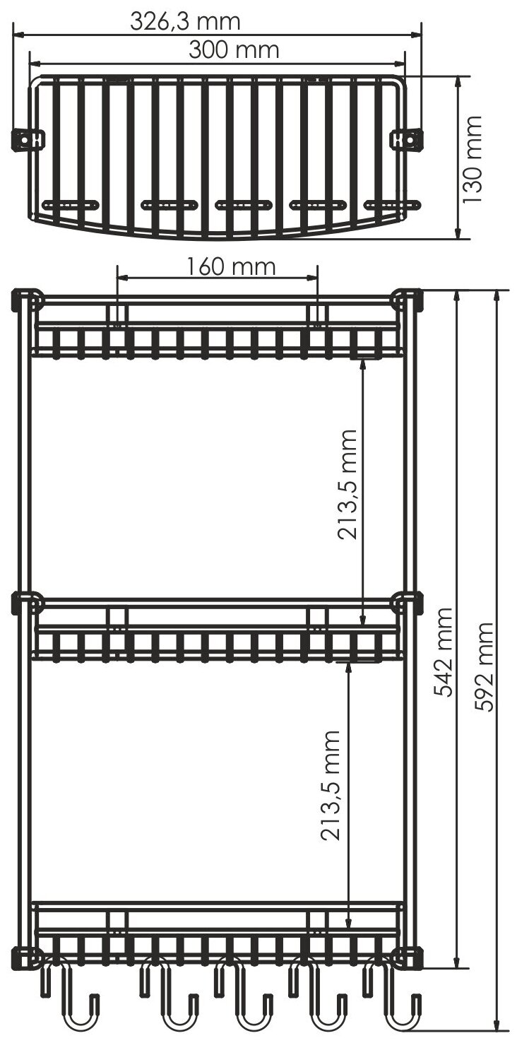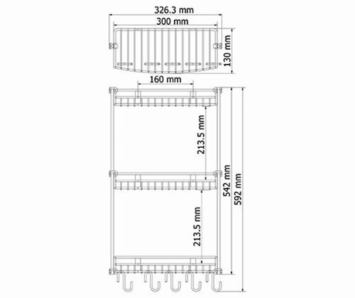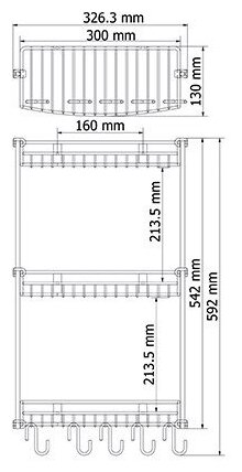 Полка металлическая тройная, прямая Wasserkraft К-1433 в комплекте 5 крючков. Полки-решетки выполнены из высококачественной нержавеющей стали AISI 304. Данный материал подходит для использования в помещениях с повышенным уровнем влажности и резкими перепадами температуры.