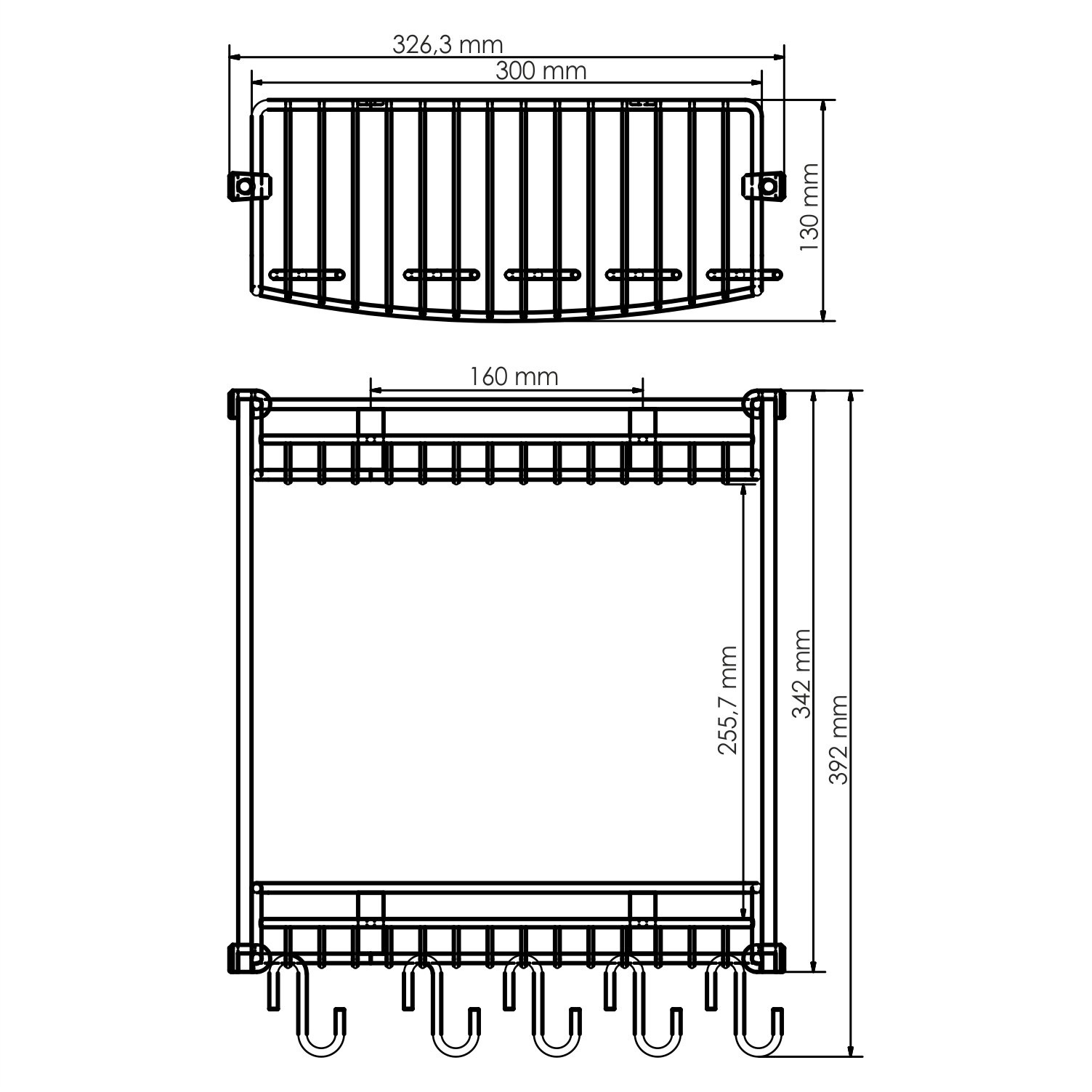 Полка металлическая двойная, прямая Wasserkraft К-1422 в комплекте 5 крючков. Полки-решетки выполнены из высококачественной нержавеющей стали AISI 304. Данный материал подходит для использования в помещениях с повышенным уровнем влажности и резкими перепадами температуры.