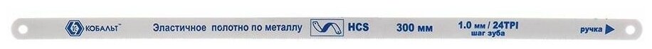 Полотна по металлу для ручной ножовки 300 мм КОБАЛЬТ предназначены для аккуратного прямолинейного пиления листовой стали, металлопроката, профилей из цветного металла, не хрупкого пластика, стеклотекстолита, винипласта. Волнистое полотно обладает повышенной гибкостью, изготовлено из высокоуглеродистой пружинной стали 65Г (HCS) с фрезерованными зубами. Длина общая 300мм, шаг зубов 1,0мм (24TPI). Упаковка - блистер 10 шт.