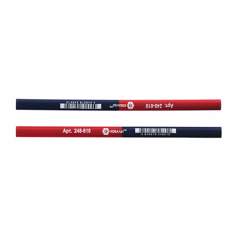 Карандаш строительный Кобальт 248–610 применяется для нанесения разметки при выполнении строительных, плотницких и малярных работ. Имеет 2-цветный грифель красного и синего цвета шириной 10 мм. Длина 180 мм. В упаковке 1 шт.Внешний вид и/или характеристики товара могут быть изменены производителем в соответствии с производственным процессом.