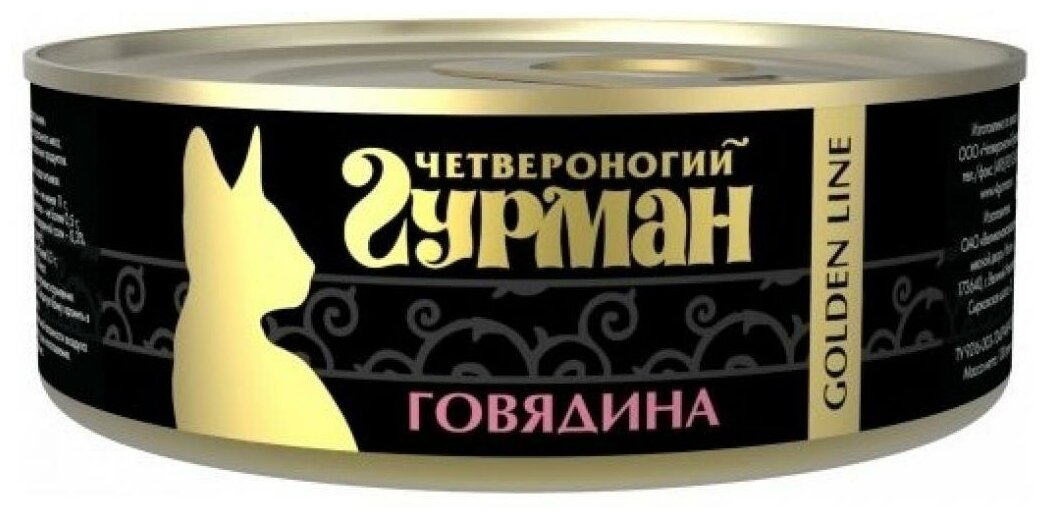 Корм для кошек ЧЕТВЕРОНОГИЙ ГУРМАН говядина натуральная в желе 100г