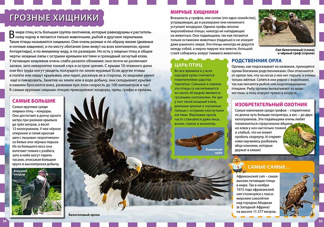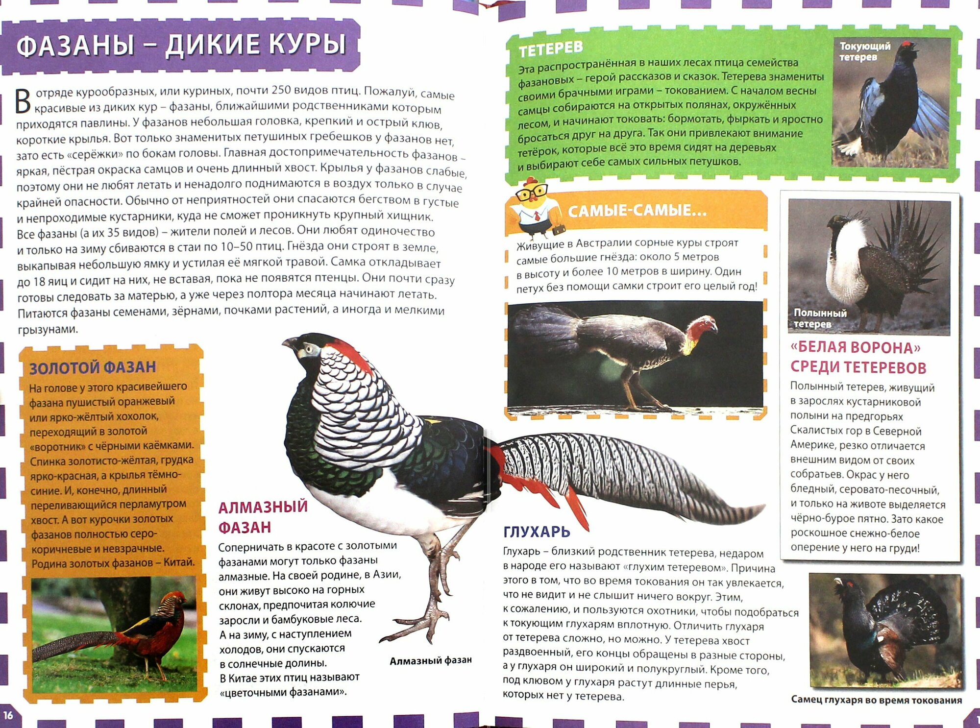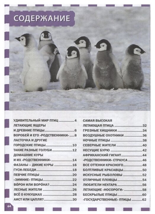 "ПТИЦЫ" - это книга о пернатых обитателях нашей планеты: они населяют её повсюду, от снежных просторов до тропических лесов. На страницах нашей энциклопедии вы узнаете, чем отличается ворон от вороны, кто летает быстрее всех птиц, зачем тукану такой большой клюв и кто такой нанду, познакомитесь с пушистым киви, огромным страусом и симпатичными пингвинами.