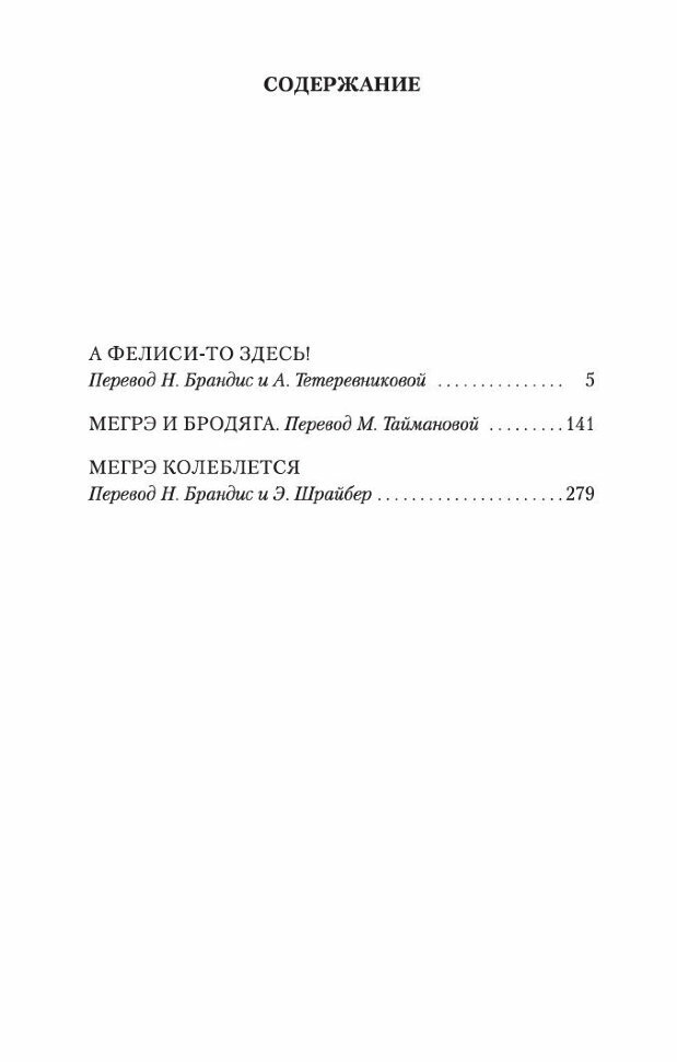 Великий и неповторимый комиссар Мегрэ — типичный парижанин. Он носит давно вышедшие из моды котелок и пальто, не расстается с трубкой, предпочитает дождливую погоду, обожает греться у огня и ходить, заложив руки за спину. Мрачный, немногословный, он обладает редким даром внушать доверие, ему известны тайные пружины человеческой драмы. Разгадывая самые сложные преступления, распутывая самые причудливые интриги, Мегрэ руководствуется одним безотказным принципом: чтобы найти виновных, нужно прежде всего понять смысл их поступков… В настоящее издание вошли три известных романа о комиссаре Мегрэ: «А Фелиси-то здесь!», «Мегрэ и бродяга», «Мегрэ колеблется».