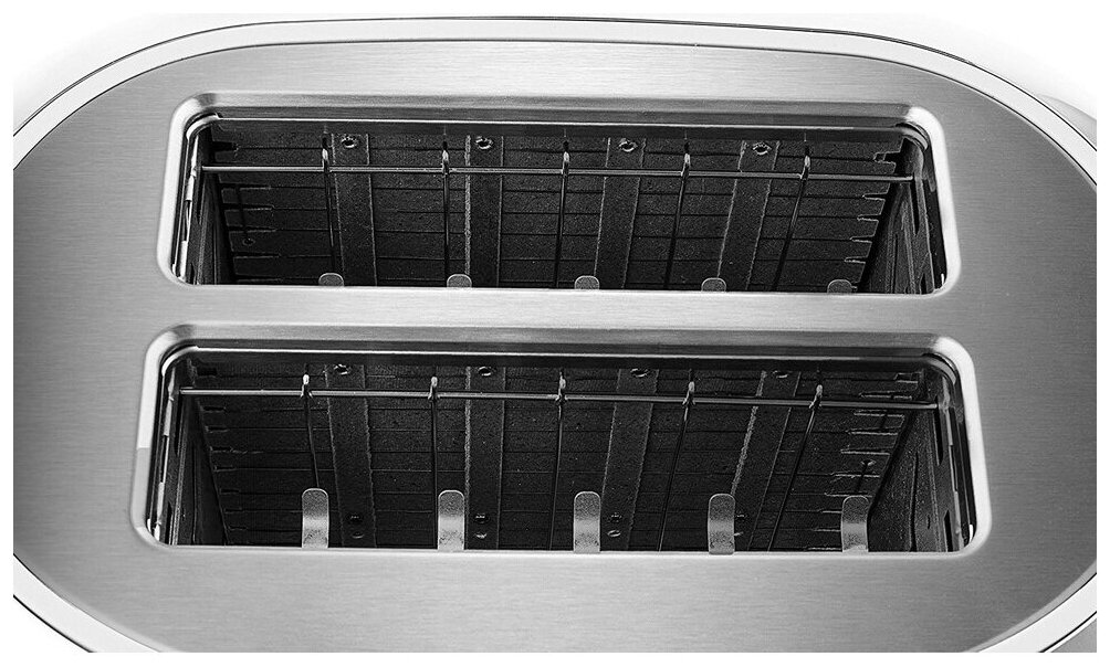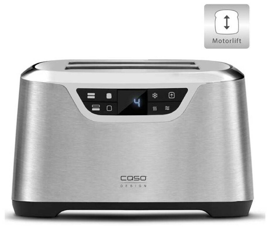 Тостер для обжаривания ломтиков тостового хлеба, предназначен для использования в квартирах, частных домах, офисах и отелях. Рассчитан на 2 ломтика хлеба. По окончанию приготовления функция MotorLift плавно поднимает тосты. Данная модель оснащена ЖК-дисплеем с индикатором степени прожарки. Корпус тостера выполнен из нержавеющей стали с наличием хромированных вставок. В комплекте идет лоток для крошек, который позволяет легко убрать остатки хлеба из тостера и поддерживать кухонный стол в чистоте. Имеется решетка для горячих бутербродов или подогрева других продуктов. Устройство имеет девять степеней прожарки. Отличается максимальной простотой в управлении, при эксплуатации используется таймер обратного отсчета. Использование переднего слота возможно отдельно. Имеются функции остановки, подогрева, а также размораживания.