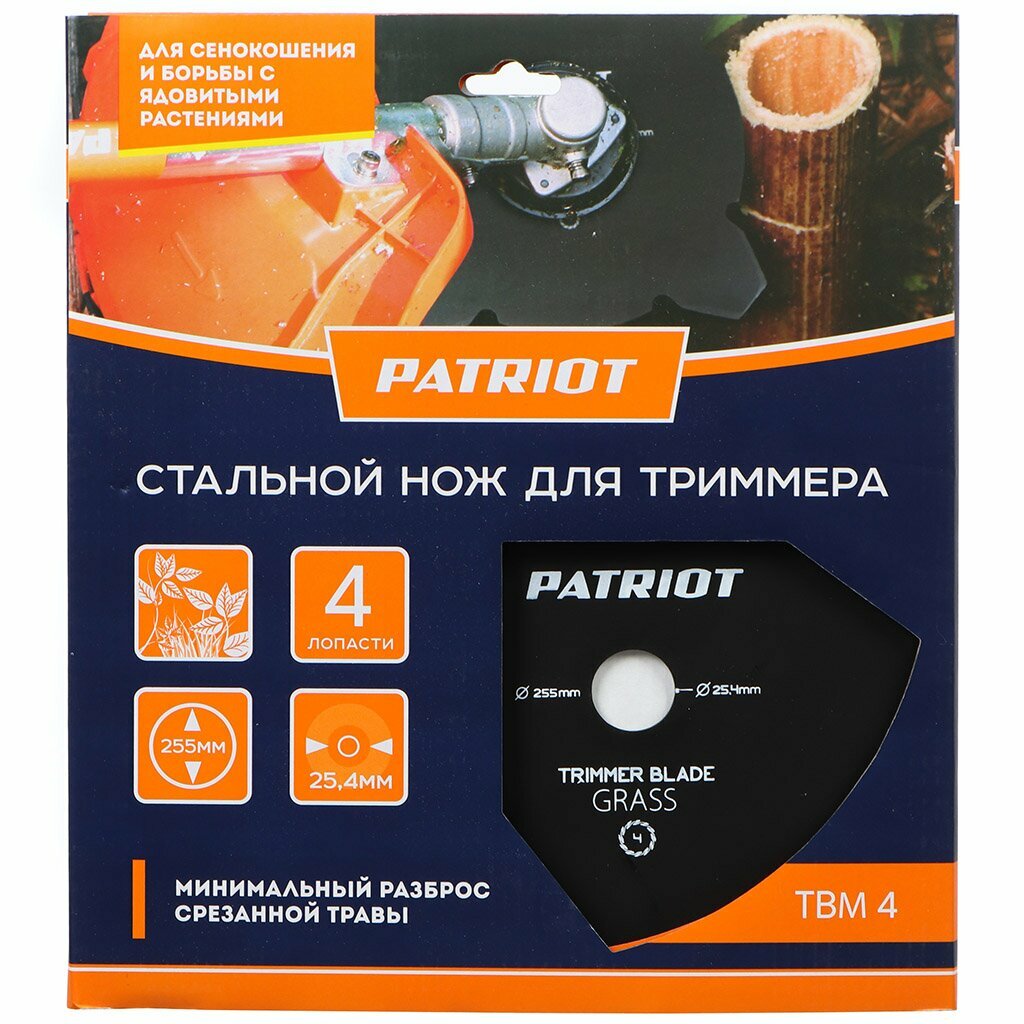 Нож PATRIOT является сменным элементом для триммеров. Применяется для срезания травы на больших площадях, идеален для борьбы с борщевиком. Форма диска оптимальна для заготовки сена и удобна для укладывания его в валки.