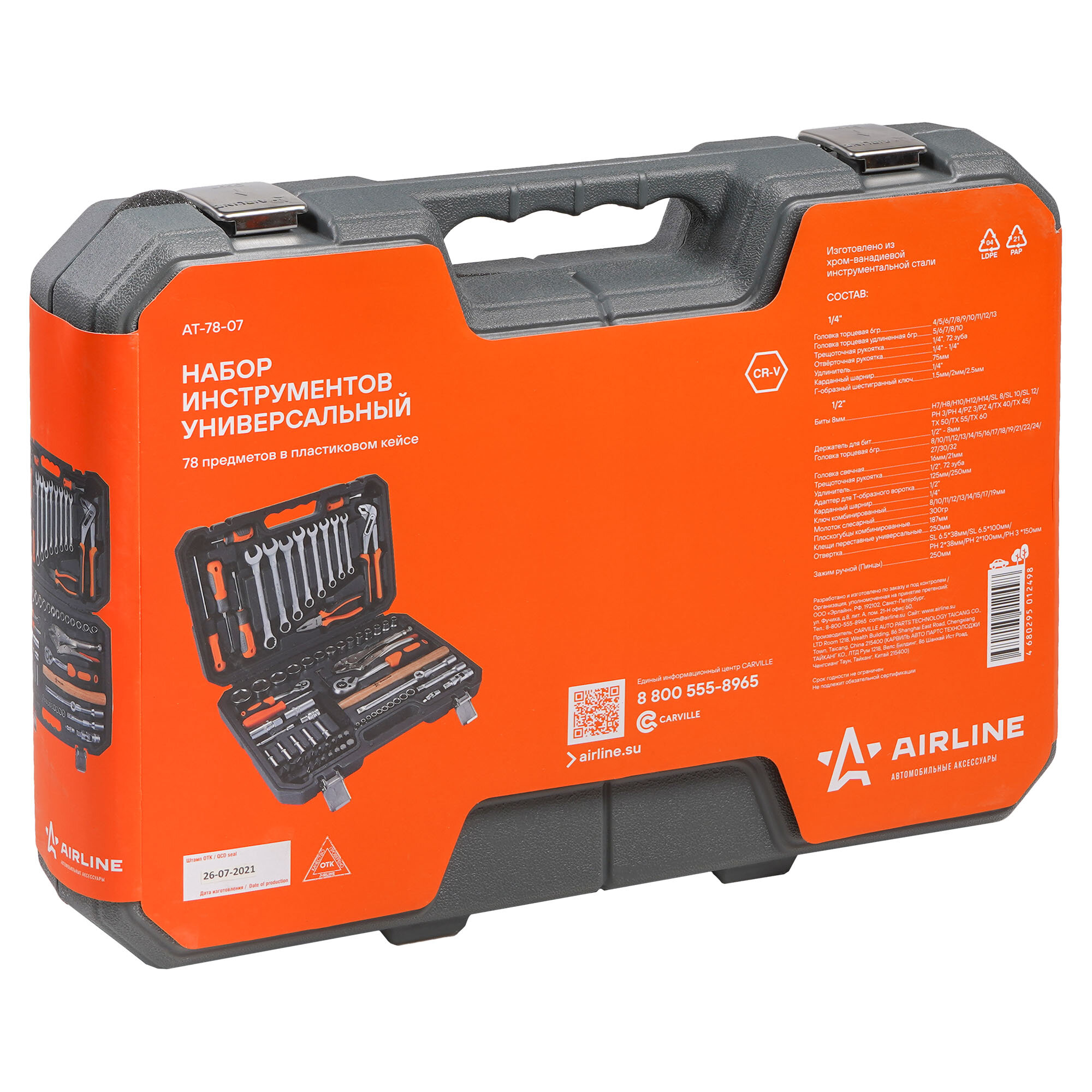 | Прочие особенности и свойства | Комплект из 78 ремонтных инструментов от AIRLINE позволяет осуществлять ремонт любого уровня быстро и с профессиональной техникой. В наборе содержатся инструменты из высококлассных и прочных материалов, а также вспомогательных деталей к ним. Уникальная система контроля служит гарантом того, что все инструменты от AIRLINE выполнены в соответствии с требованиями и стандартами, что позволяет быть уверенным абсолютно уверенным в их качественных показателях. |