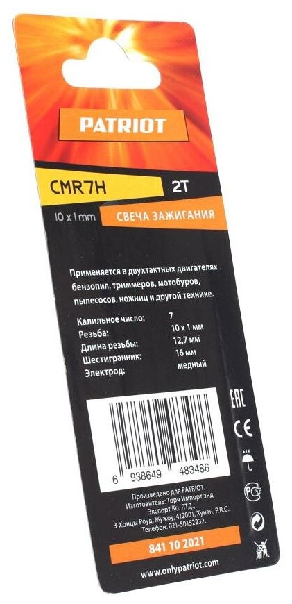 Свечи Patriot 841102021 в блистере для 2-х тактных двигателей, шестигранник 16