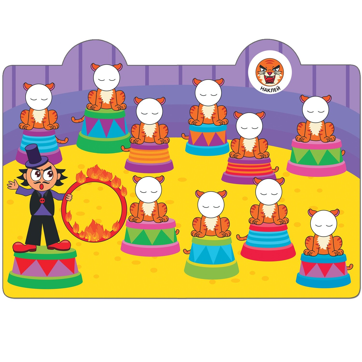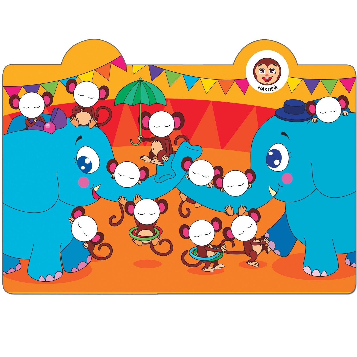 Разбудить очаровательных обитателей цирка – непростая, но очень интересная задача. Чтобы справиться с ней, маленькому читателю предстоит внимательно рассмотреть красочные картинки, а затем оживить их с помощью наклеек-смайликов. Правильно распределить их по страницам помогут подсказки.