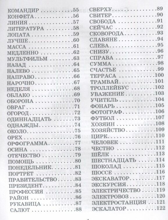 Тетрадь-тренажер для учащихся 4-го класса включает словарные слова, распределенные в соответствии с учебным планом и расположенные в алфавитном порядке. Задания составлены так, что в процессе их выполнения происходит запоминание написания слова с непроверяемой безударной гласной в корне. Кроме того, выполняя задания, учащиеся повторяют написание словарных слов, тренируются в их употреблении в речи. Это способствует получению автоматических навыков грамотного письма, развивает у детей зрительно-моторно-слуховую память.