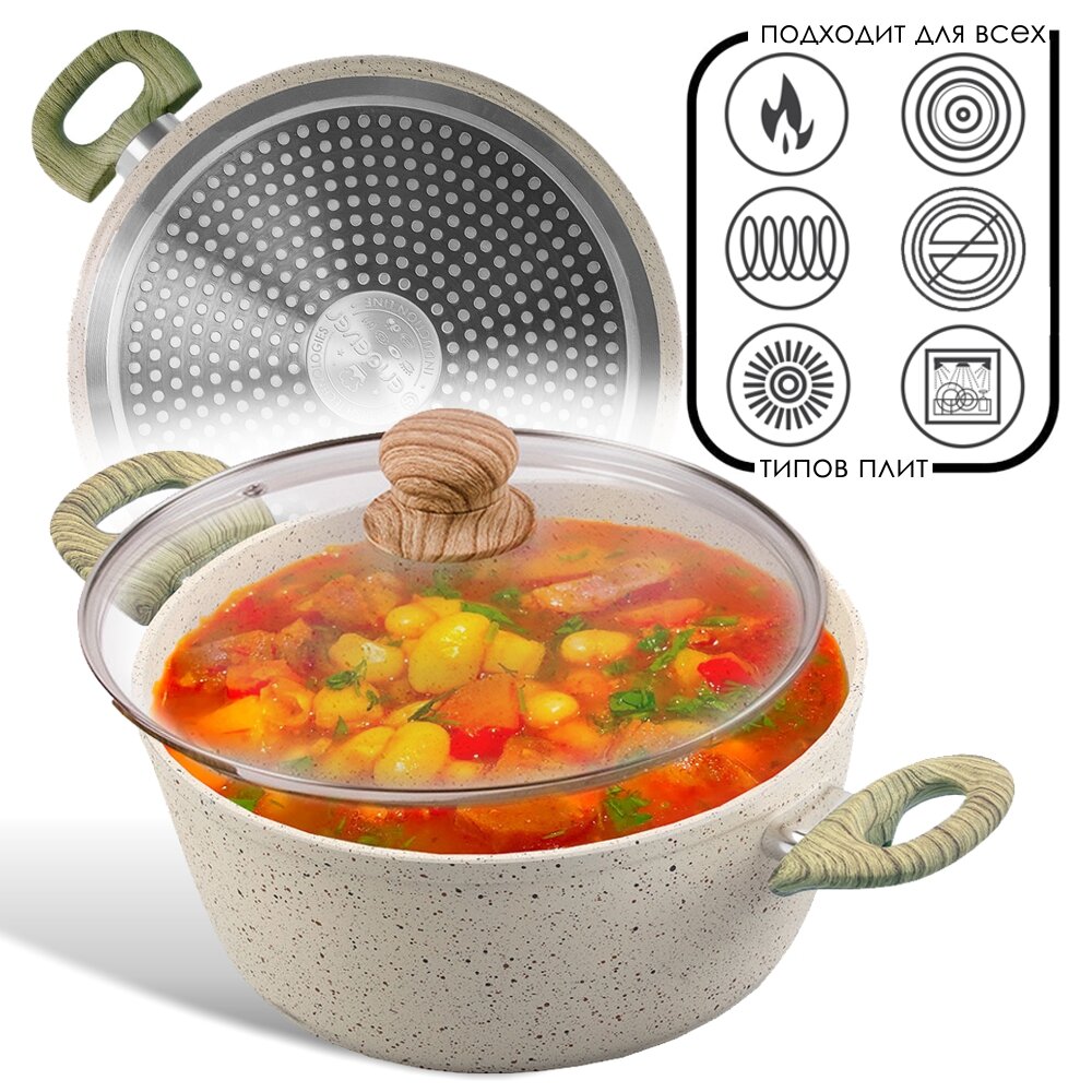 Серия Stone – алюминиевая посуда с высококачественным мраморным антипригарным покрытием для лучшего приготовления. Будьте уверены, приготовление пищи, теперь будет легкое и безопасное. Подходит для всех видов плит, включая bндукционные.