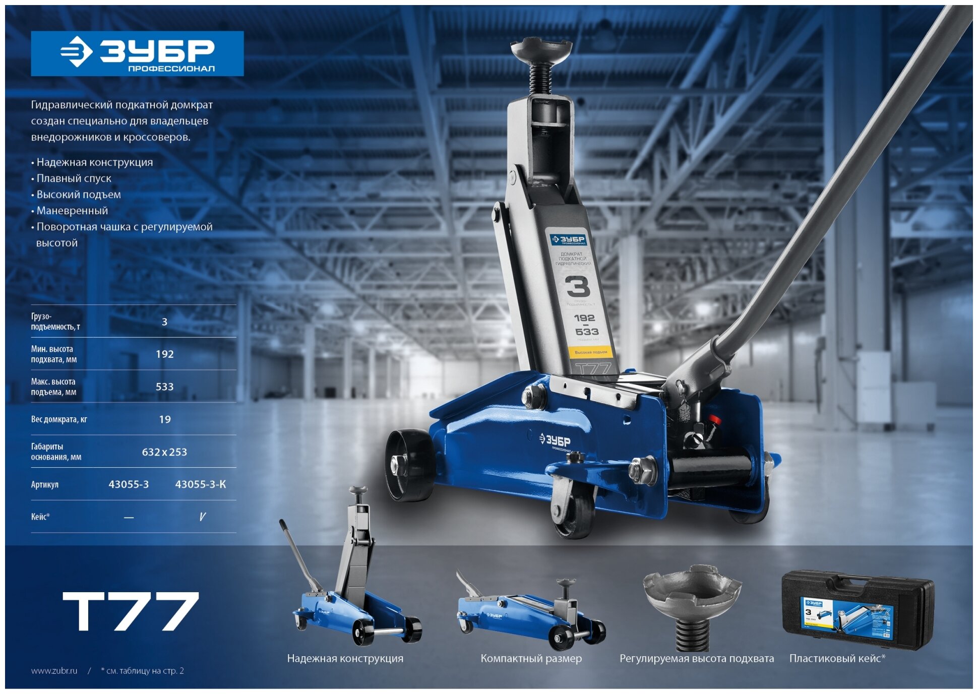 Подкатной гидравлический домкрат ЗУБР Профессионал 43050-3_z01