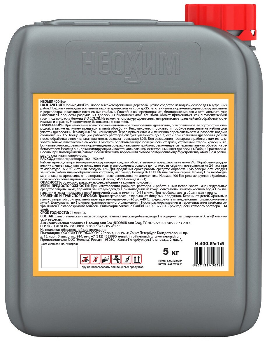Модель: Антисептик Neomid 400 для внутренних работ 1 л