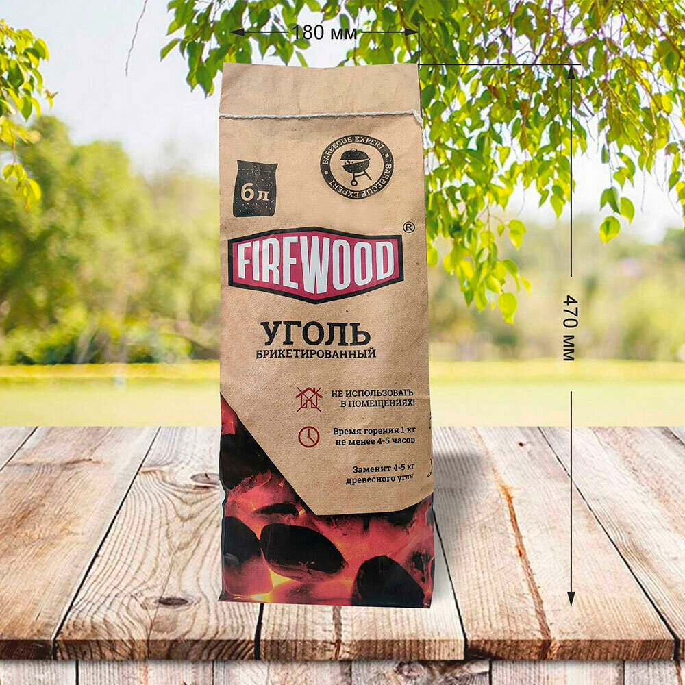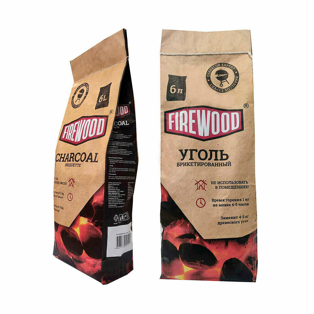 Уголь и средства для розжига FIREWOOD Уголь FIRE WOOD брикетированный 6л